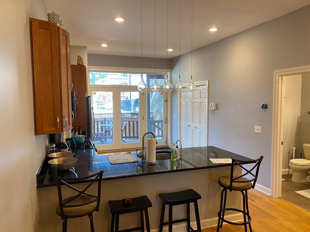 Rara vez se encuentra una unidad de plumón dúplex renovada en West Town en una calle tranquila y residencial. Se incluye espacio de estacionamiento privado semicerrado. El primer piso cuenta con techos estilo catedral, pisos de madera y un plano de piso completamente abierto hasta que una península de granito le da la bienvenida a la cocina completamente moderna con mucho espacio para cocinar/alojar. La luz natural inunda la cocina con ventanas de vidrio del piso al techo y una puerta trasera que se abre a la terraza privada y al jardín semiprivado. El baño del primer piso incluye una ducha con azulejos, el baño del segundo piso tiene un jacuzzi/ducha de mármol. El dormitorio 1 tiene un amplio armario, el dormitorio 2 también tiene un armario con vestidor con espacio adicional debajo de la escalera. En invierno, disfrute de su propia chimenea; en verano, conecte su parrilla a la línea de gas al aire libre. La lavadora/secadora ubicada en su propio armario, también incluye una unidad de almacenamiento con cerradura. Fáciles opciones de transporte, a una cuadra del autobús Damen, a pasos del autobús Chicago Ave, línea azul Y Metra en las cercanías. No se permiten mascotas, se mudará el 1 de julio.