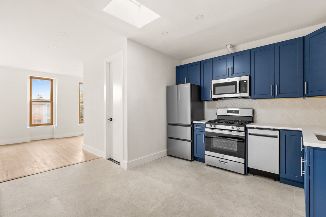 Be the First to Live in this Masterful Gut Renovation Bring in the New Year in style. This king-sized 1-bedroom has been expertly reimagined, converted from a traditional 2-bedroom into a sprawling, modern sanctuary. Located on the top floor of a classic Brooklyn brick townhouse, you'll enjoy peace, privacy, and incredible light. The Apartment Features: • Designer Kitchen: Gorgeous blue cabinetry and brand-new dishwasher. • Modern Luxuries: In-unit washer/dryer and a massive walk-in closet. • Space & Character: Exposed brick, a sunny living room, and a king-sized bedroom. • Brand New: Everything from the floors to the fixtures is untouched. • Great natural light in every part of the apartment including the kitchen which has a skylight. The Location: • Commute: Just a 6-minute walk to the Kosciuszko J train—a straight shot into Williamsburg, the LES, and Fulton Street. • Local Favorites: Steps from Le Antagoniste, Trad Room, Santa Panza, and Milk & Pull and much more. • Green Space: Enjoy a stroll down Greene Avenue to Herbert Von King Park. • Convenience: Minutes from Foodtown, Walgreens, and the new Global Farm on Broadway. Details: • Utilities: Range between $120–$200/month for gas and electric. • Pet: Friendly (under 50 pounds fully grown). • Tours: Flexible scheduling available. Units of this caliber move quickly. Contact today to schedule a private tour and secure your New Year move-in. Video Tour available at pearnyc ig account