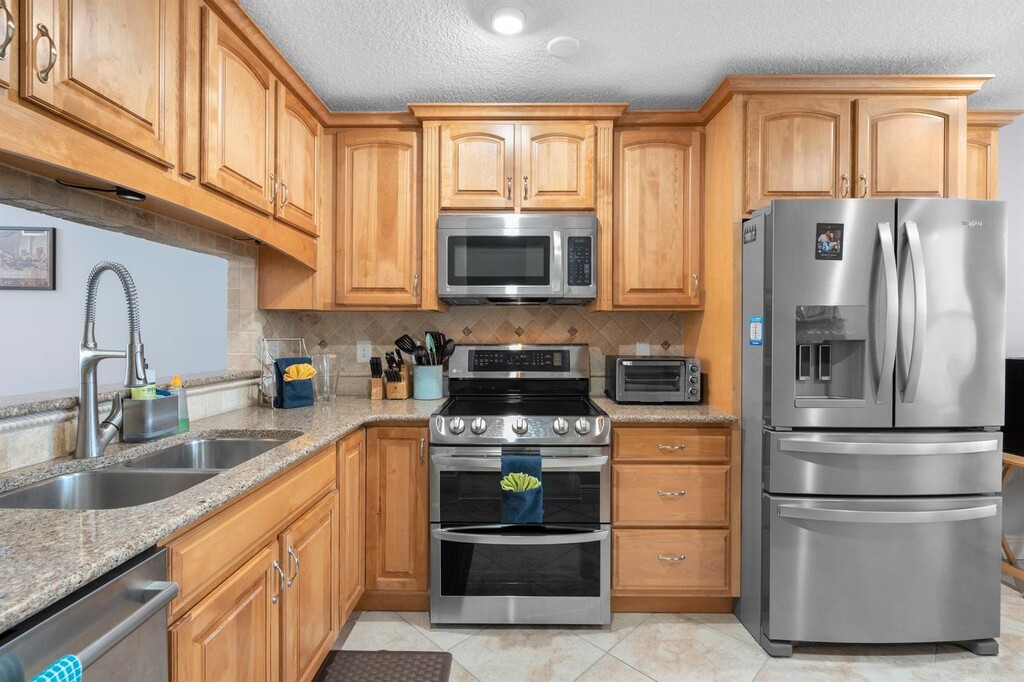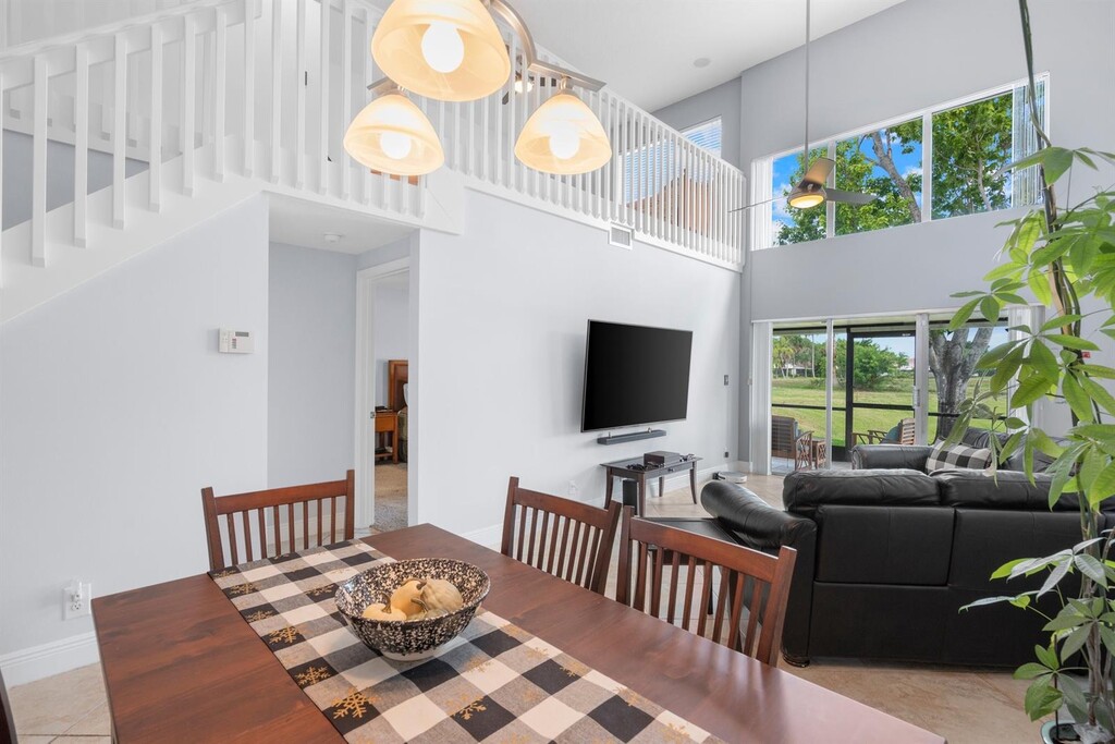 Beautifully updated 3-bedroom, 2.5-bathroom townhome with a loft in the sought-after Fairway Views community. This remodeled two-story residence boasts an open and airy design with a modern kitchen featuring quartz countertops, brand-new appliances, high ceilings, and sleek vinyl flooring throughout. The primary suite is conveniently located on the first floor, offering patio access, a tranquil water view, an updated bathroom, and a walk-in closet. Upstairs, you'll find two spacious bedrooms and a generously sized loft. The family and dining rooms are filled with natural light, creating an inviting atmosphere. Enjoy outdoor living on the private screened-in patio, perfect for entertaining or unwinding in comfort.