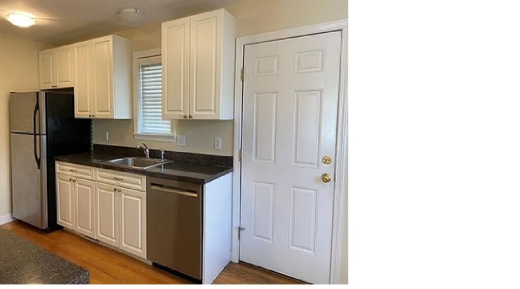 available May 1st. This 2 bedroom modern townhouse style unit has 2 levels and hardwood floors throughout. The first floor has a living room, small dining area and kitchen with stainless appliances including gas stove, refrigerator, dishwasher and disposal. Upstairs are two bedrooms and one full bath. Both bedrooms have large closets. The private basement is exclusive to this unit and includes a full size washer/dryer. The unit is gas heated (utilities not included) and off street designated parking for 2 cars is provided. Snow removal is provided. Conveniently located on Mystic Street, just a few blocks from Arlington Center, the Minuteman Bike Path, and public transportation. nonsmokers only. Year lease. First, security, fee. Renter's insurance required.