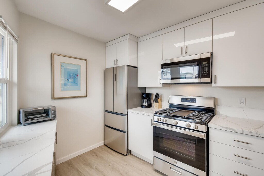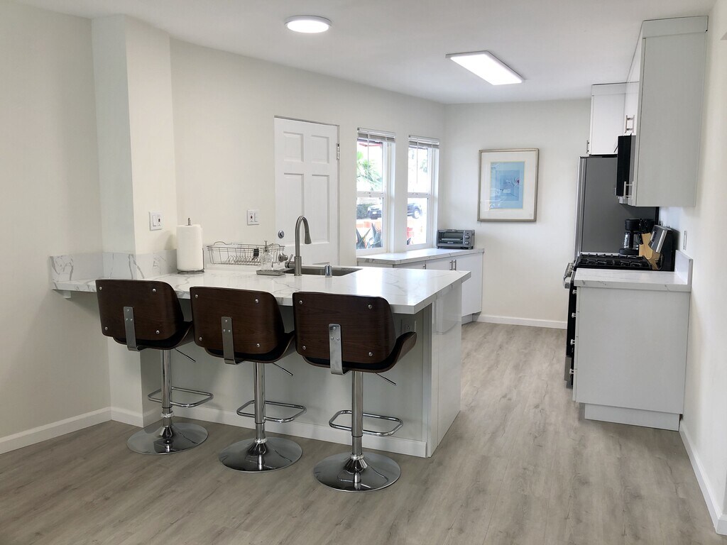 Remodeled 2 bedroom, 1 bath first floor apartment ideally located steps away from the beach and one block from the bay! Our place is in the perfect location between Mission Beach and Pacific Beach so you can conveniently enjoy the Mission Beach boardwalk, shops, restaurants and nightlife, while being just a short walk to Pacific Beach. The apartment was renovated in 2020 and has modern touches and upgraded everything. Additionally, there is shared access on-premises laundry and patio area with a grill, table, chairs etc. No parking on premises; street parking only. The apartment is unfurnished although it is pictured furnished. Call, text, or email to schedule an appointment today! Owner pays for water and sewage. Tenant pays for all other utilities. Pets are welcome, however there is a pet fee of $50/month.