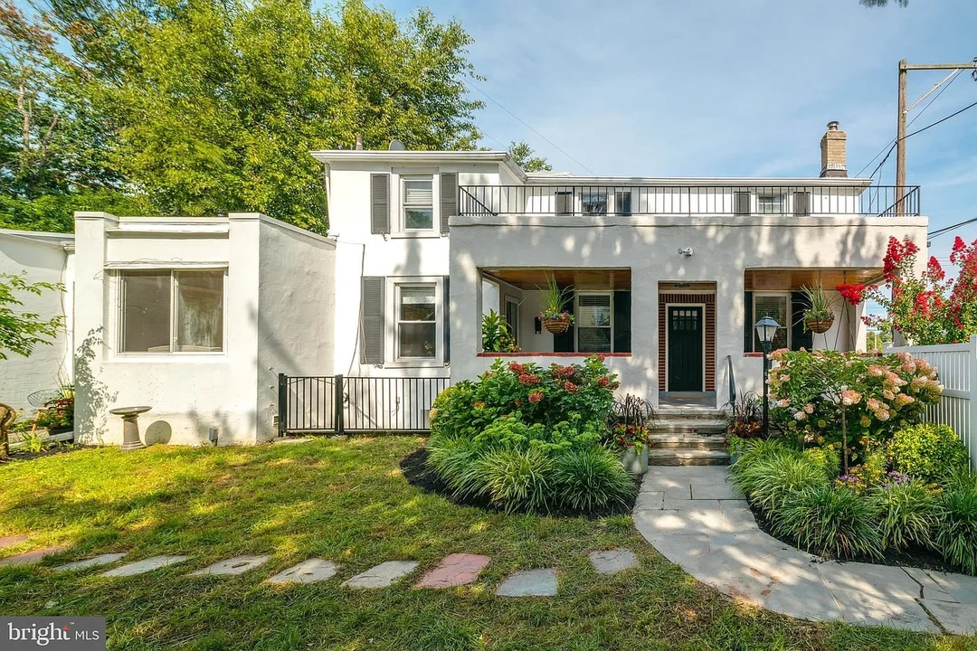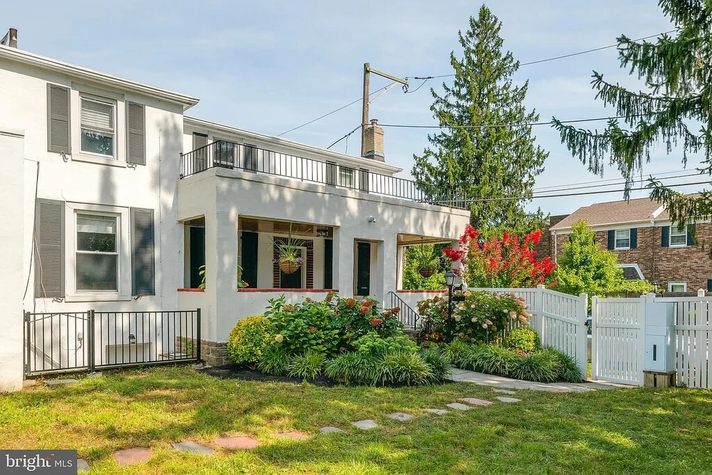Located in the heart of Chestnut Hill, this beautifully maintained historic residence dating back to the late 1800s offers a rare blend of classic character and modern updates. A welcoming covered front porch with a striking wood ceiling sets the tone, complete with a porch swing overlooking a professionally landscaped yard featuring a cherry tree and grape vines—a peaceful outdoor retreat. Step inside through the freshly painted, northeast-facing entry to find hardwood floors throughout, a spacious living room, formal dining room, convenient powder room, and a newly updated eat-in kitchen. The kitchen is filled with natural light and showcases brand-new countertops, hardware, and contemporary finishes. At the center of the home is an impressive, renovated family room designed for entertaining, highlighted by soaring ceilings, a wood accent wall, and sliding glass doors that open to a private patio. Adjacent to the family room is a dedicated office with a large picture window overlooking the serene backyard. The first floor also features an oversized primary suite accessed through double doors, offering high ceilings, additional windows, and a beautifully renovated en-suite bathroom. Upstairs, you’ll find three additional bedrooms and a full bathroom. Additional amenities include a detached two-car garage, a motorized gated driveway with space for three or more vehicles, ample storage with a large shed, and an unfinished basement. Notable updates include new stucco (2019), interior paint (2019), new doors (2019), and a hot water heater (2020). Ideally located near Germantown Avenue shops and dining, Morris Arboretum, Fairmount Park trails, public transportation, top private schools, and the PA Turnpike, this exceptional rental offers charm, space, and convenience in one of the area’s most sought-after neighborhoods.