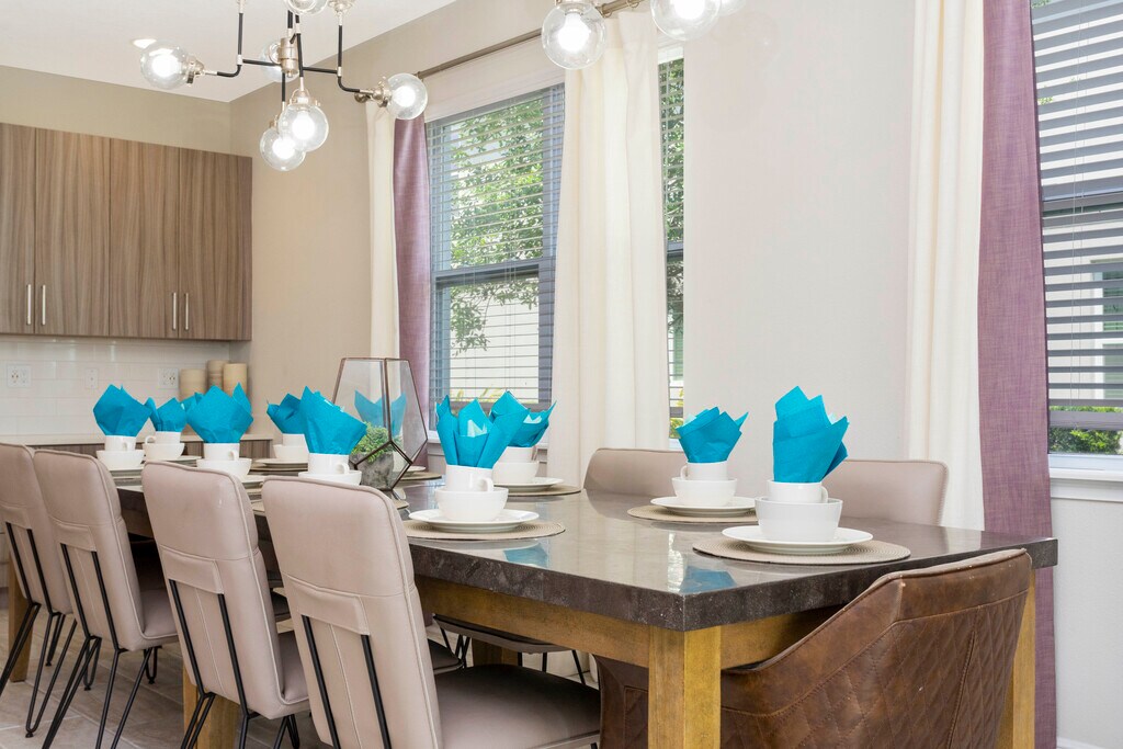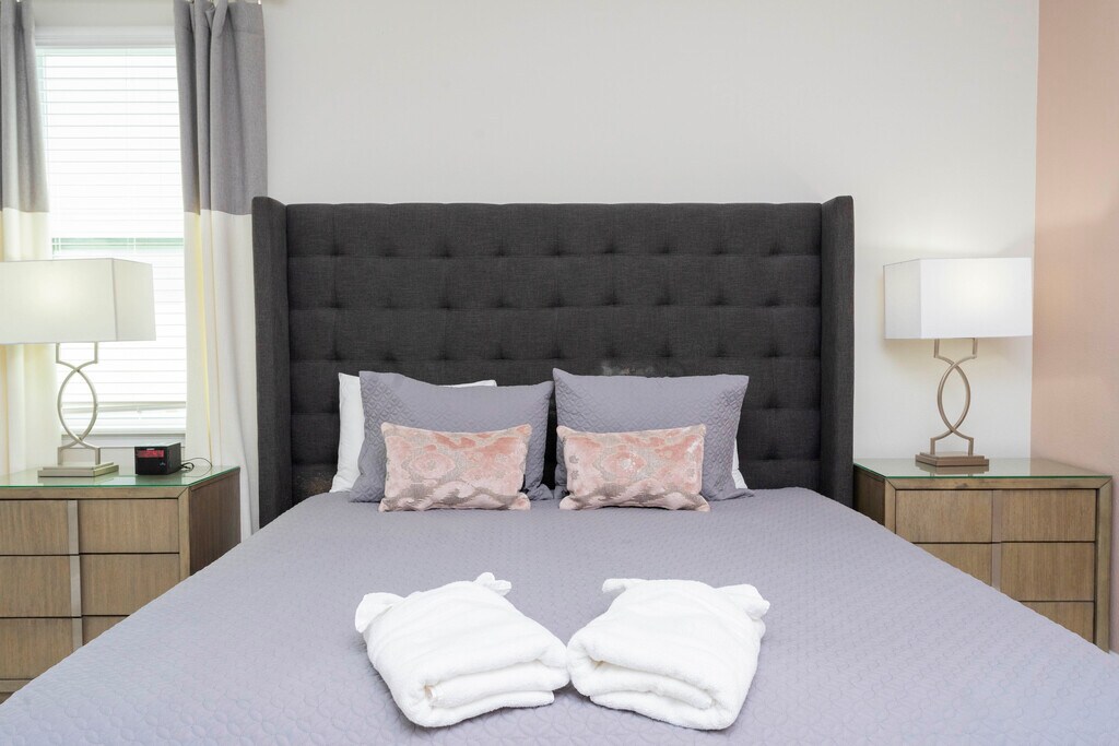 Welcome to this SPETACULAR 6 bedrooms/5 Bathrooms with private pool and spa! This house was the PREVIOSLY MODEL HOME for the resort and features a modern high-end furnishing with a professional design. The home provides two floors of spacious accommodation for 17 people. Absolute perfect to use as a primary, vacation home. The property is the only property fenced in the community which provides unparalleled privacy. Also has pool fence plus play ground with slides and swings and jungle climb inside the property. Encore Resort includes a water park, Water-slides, swimming pools, fitness center, playgrounds, tennis court, clubhouse. Surf wave pool and there are also amazing restaurants available. It is conveniently located next to many of popular Orlando’s attractions, including Disney World, Universal Studios, SeaWorld, boutique shopping, and much more. Also its note worthy that the property does not have any view of freeways or roads and highways. HOA covers internet, pool, landscaping, gate and patrol security, and pest control.