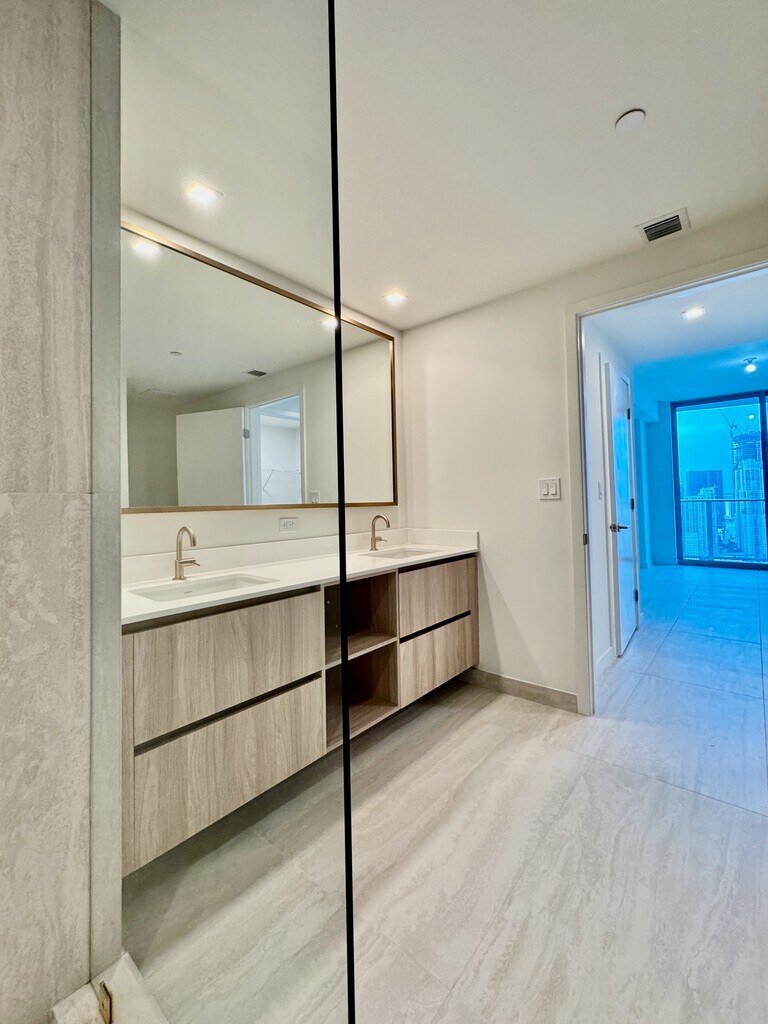 BEST LINE AT VICEROY - Unit 4002 at Viceroy Residences Brickell is a brand new, never-occupied 2-bedroom 2-bathroom 2-parking spaces residence on the 40th floor with 1286 SF and an additional 161 SF private balcony, available immediately. What makes this unit stand out from everything else currently listed at Viceroy: NEVER LIVED IN! This is not a refreshed unit or a re-listed rental. You are the first tenant. 40th floor views. Direct views of Biscayne Bay and the Miami skyline, floor-to-ceiling glass throughout. Two parking spots included. One assigned, one valet, both included in the rent at no additional cost. In Brickell, that is not a detail to overlook. Move-in ready. Blackout blinds were already installed in both bedrooms by the owner. Premium appliances and in-unit washer and dryer throughout. Amenities that go beyond the standard. Full-service concierge, resort-style pool deck, state-of-the-art fitness center, speakeasy, state of art event center with wine vault, tasting room, game simulator room, private coffee shop at lobby, movie theater, spa and more, all inside a building that is brand new. 1,286 square feet unfurnished. Bring your own furniture and make it yours from day one. Located at 77 SE 5th Street in the heart of Brickell. Steps from Brickell City Centre, The Underline, Whole Foods, and the best restaurant corridor in the neighborhood.