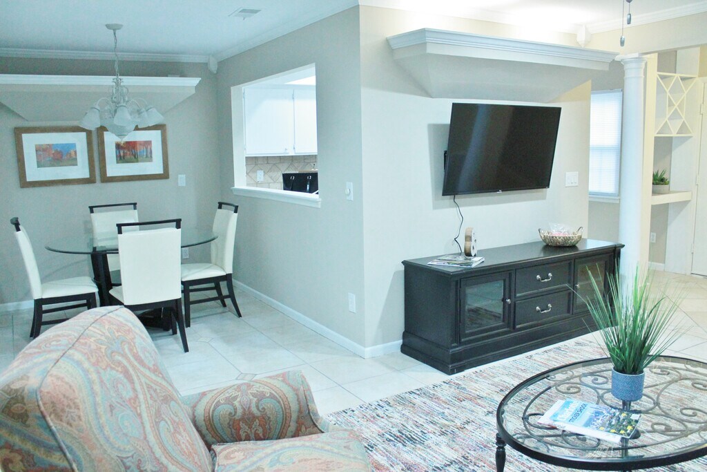 Fabulous 2 bedroom condo in a wonderful location! Convenient to Ballantyne, Southpark, I-485, shopping and restaurants. Large, open floor plan with loads of natural light. Cozy fireplace in livingroom. Convenient first floor location, with a nice outdoor patio. The master bedroom has a king sized bed, private bath and 2 double closets. The guest room also has a king sized bed and a private bath. Livingroom and bedrooms have flat screen smart tv's. 1 month min required Furnished All-Inclusive Utilities Included Wifi Included Cable Included Towels and Linens included Pots, pans, appliances included