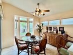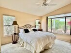 Available for an annual lease in Sun City Palm Desert is an active senior community For Those 55+ - Turnkey-furnished. Primary Suite is at the opposite end from guest bedroom & guest bathroom. Primary bedroom has a king size bed and flat screen TV. The bathroom has oversized walk in shower, dual sinks, 2 closets and mirrored doors. Guest bedroom with full size bed and TV with access to a full Bathroom with shower over tub. Living room is attractively and comfortably appointed with flat screen TV. The kitchen has a gas cooktop with good cabinet and counter space and a breakfast bar. Dining Area with bay window overlooking yard. Efficient, built-in office area. Extended patio has an alumawood overhang, patio set and lounge chairs. Washer/Dryer and sink In garage with 2 car parking and storage - HOA plan TV w/extended channels and WI-FI Internet Connection are also included. Guard/gated community, Golf, Pools, Tennis, pools, pickle ball, restaurants, postal center, +++ and so convenient to clubhouses. $300.00 Cleaning fee, Security deposit equal to 1 months rental amount.