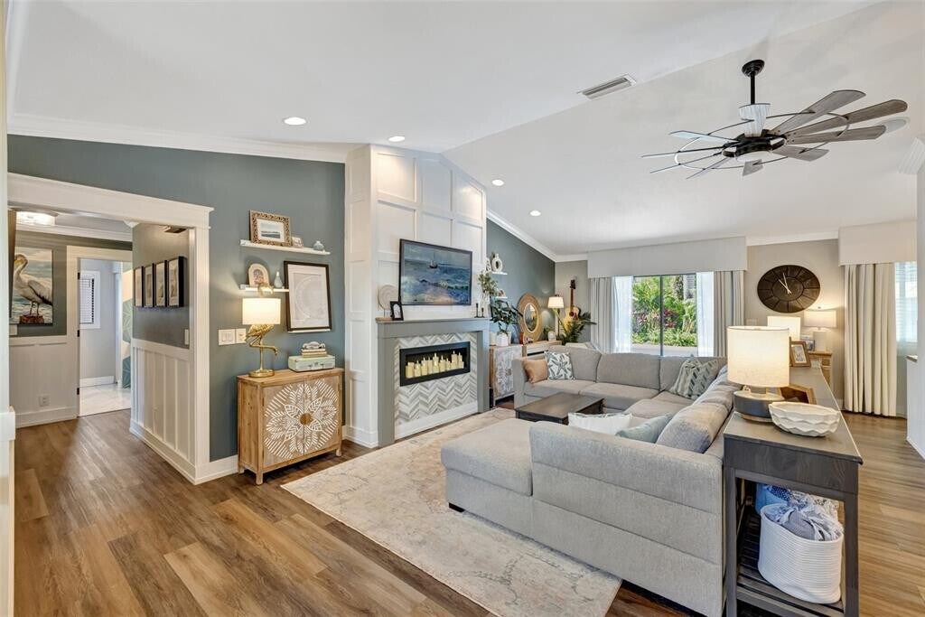 Move-in ready and beautifully updated! This 3-bedroom, 2-bathroom home features a modern open kitchen with sleek finishes, an oversized pantry, and an office nook integrated into the living room. The primary bathroom is a true retreat, offering a spacious double shower, soaking tub, and dual sinks. Step outside to a large heated pool, hot tub, and a tranquil pond, creating the perfect space for relaxation or entertaining. The removable pergola stays with the home, and there's potential to add an outdoor kitchen for even more versatility. A perfect blend of comfort, style, and function—ready for you to call home!