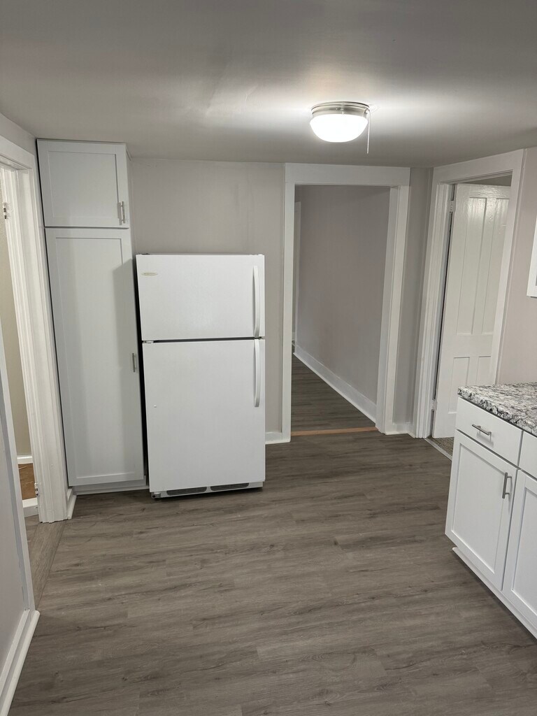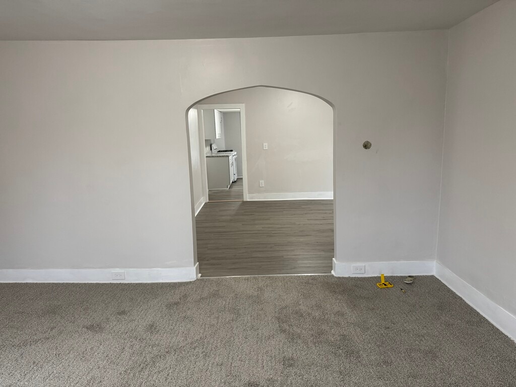 This upstairs two bedroom unit has been completely renovated with every surface of the appartment touched. The layout of the apartment includes two medium sized bedrooms, freshly painted, including all doors & trim, and has brand new carpet. The main living spaces, consisting of a large living trim as well as a formal dining area have tremendous natural light & brand new luxury vinyl tile flooring. The new flooring flows into the spacious kitchen as well. You'll notice new cabinets & counters. The full bath has been completely gutted, and brand new. Custom shelving and storage are ample in the apartment. All lighting & plumbing fixtures are brand new. One off street parking space is assigned to this unit, and there is laundry, shared with the downstairs unit, in the common area. This home is in a great neighborhood & centrally located with easy access to everything you'll need. Perspective tenants should be prepared to supply references, provide income documentation, and have sufficient credit. This is a non-negotiable smoke free and pet free unit. Unit is plus utilities. If interested in setting up a private viewing, please respond with your phone number. Thank you!