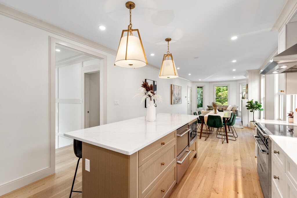 Available 4/1 or 5/1: Be the first to enjoy maiden tenancy in this beautifully gut-renovated home, rebuilt to the studs by a highly regarded local builder. Set on a quiet, tree-lined street in one of Cambridge's most desirable neighborhoods, it offers 2,040 sq ft of flexible living space and central air throughout. The main level features open-concept living and dining, gas fireplace, a sleek kitchen with large island, custom cabinetry, and Fisher & Paykel appliances, two full bedrooms and two full bathrooms. The lower level adds a spacious bonus living area with wet bar, mudroom, additional bedroom, full spa like bath, laundry, and extra room for an office, gym/yoga, or storage. Private patio and deck. Convenient to Fresh Pond, Danehy Park, Alewife Station, Porter and Davis Squares, Harvard University, public transit, and major routes. Equally located between Porter and Harvard Squares. Application with credit & background check. First & last month rent required before move in. Tenant pays gas, electric, plus any cable or internet. No security deposit required (1st and last month's rent only). Street parking. 1 dog may be negotiable.