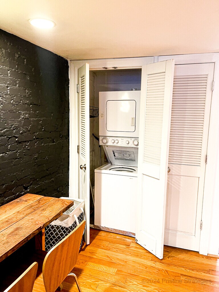 Live in the heart of the Central West End! Charming century-old classic architecture with today's interior! This unit is on the first floor and is freshly painted throughout with bright Neutral colors. Hardwood floors. Brick accent wall. Modern kitchen with serving bar, dishwasher, and built-in microwave. Fridge included. Stackable washer-dryer in unit. Generous size closets plus loads of storage in lower level. Brick patio. Private Secure parking! Convenient gated parking near the rear door. 10-minute walk to WU Medical School/Barnes complex! A true must-see! Call today to set up a private tour of this tremendously charming condo!