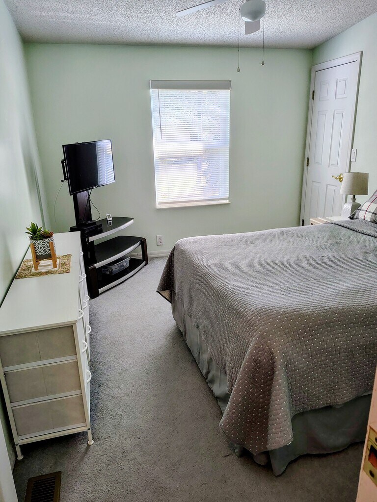 es un pequeño apartamento limpio amueblado para 1 . Es la mitad trasera de nuestra casa con una entrada y llave separadas. Tiene un dormitorio y un baño. La cocina pequeña, el refrigerador completo y la sala de estar están separados del dormitorio. Todas las utilidades están incluidas además de Wi-Fi de espectro. El servicio de limpieza que se ofrece por 50,00 incluye lavar las sábanas y toallas.