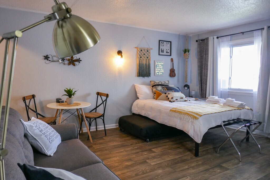 El plazo de arrendamiento es flexible; mes a mes, 3 meses, 6 meses, etc. Pregunte por sus necesidades. Todo lo incluido en RENT! 8th Avenue / Melrose area se ha convertido en una ubicación increíble en Nashville. Nuestro estudio está a menos de 5 minutos a pie de restaurantes, Publix, licorería, farmacia, bancos y a 20-25 minutos a pie de la famosa 12th South Ave. ¡Puntuación de marcha de 82! Ubicado junto al nuevo estadio Geodis. ¡Todo lo que necesita hacer en Nashville está a unos 10-15 minutos de distancia! Fácil acceso al teclado para que no necesite sus llaves.