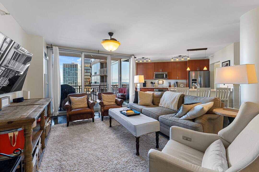 Rarely available luxury rental in the heart of Evanston. Enjoy views of the lake from every window in this exquisite 1600+ square foot, 2-bedroom (plus den), 2-bathroom 12th-floor unit. Views are East and North facing. Open-concept layout, espresso hardwood floors, fully-equipped kitchen, in-unit washer and dryer, ample storage space, high-end finishes. Building features hospitality suite, outdoor entertaining space, state-of-the-art fitness center, separate storage unit, bike storage room, 24/7 package retrieval, on-site management, and interior access to Target. One indoor parking space in the attached garage included. Walking distance to the lake and Northwestern University. Schedule your private tour today!