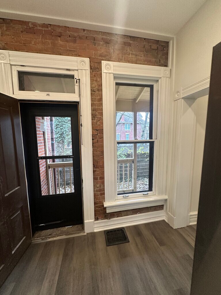 1100 sq ft total livings space. 2 large bedrooms, and a large living room. Nice kitchen with quartz countertops and newer appliances. Original doors and woodwork are in place, early century mantels and exposed brick walls all add to the charm of this brick villa. It is located in the heart Italian Village/ Short North. Just a few minutes walking distance from all the things Short North offers: Bars, Restaurants, Goodale Park, Brewery District and quaint shops galore. Apartment is on 2nd floor