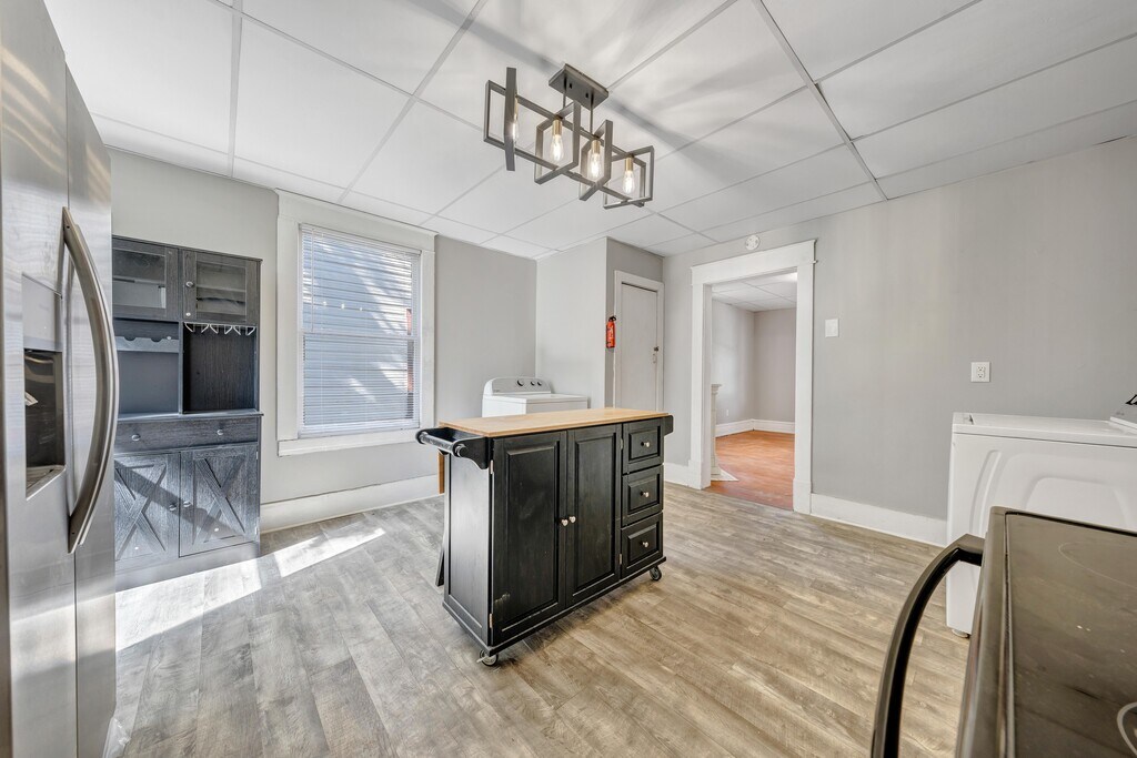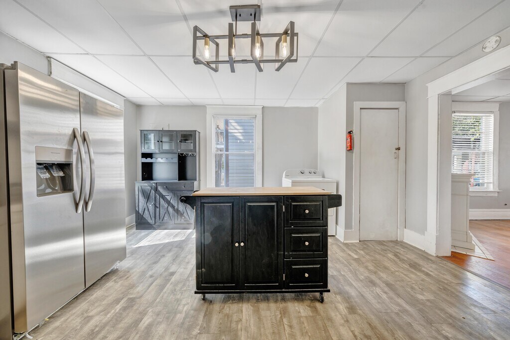 RENOVATIONS ARE COMPLETE! PORCH WORK TO BE STARTED SOON! NOTE: THE HOUSE NEXT DOOR IS BEING SOLD AT AUCTION IN NOVEMBER (there will be construction, but will not disturb neighbors). Spacious (approximately 1,200 square feet) Two Bedroom First Floor Apartment in a Two Unit Building. Two Large Bedrooms! New Outdoor Ceiling Fans on Shared Front Porch! Beautiful Hardwood Floors Throughout. Wood Tile in Kitchen and Bath, Designer vanity and vanity light. Designer Paint Throughout. Crystal Lighting (2) in Hall. Designer Light Fixtures Throughout. Kitchen Island w/ Bar Stools provided. Large Windows Throughout for Natural Lighting. High Ceilings. Beautiful Electric Fireplace in Living Room and Front Bedroom. Shared Front Sitting Porch (designated portion of the front porch for each unit) and Shared Fenced In Backyard. Shared Driveway. Patio in fenced in backyard to be extended w/ tile in coming months. No central air, 4 window units. Two Pets Allowed. NEW Full Size Washer/Dryer! NEW Stainless Steel Side by Side Refrigerator and Electric Range. Walk to Downtown, Highland Park/Highland Park Dog Park, Grandin and Wasena! TWO PETS ALLOWED (DOGS OR CATS)! RENOVATIONS INCLUDE: *NEW SHERWIN WILLIAMS LIGHT FRENCH GRAY PAINT *NEW STAINLESS STEEL SIDE BY SIDE REFRIGERATOR W/ ICE-MAKER * NEW STAINLESS STEEL ELECTRIC FLAT SURFACE RANGE *NEW WHIRLPOOL WASHER/DRYER *NEW SOLID WOOD ENTRY DOORS *ALL NEW SOLID WOOD INTERIOR DOORS *NEW BEDROOM BLACK LIGHTING *NEW MATTE BLACK DOOR KNOBS AND HINGES *NEW BROAN BATHROOM EXHAUST FAN W/ LIGHT *NEW MATTE BLACK BATHROOM ACCESSORIES *NEW MOEN MATTE BLACK SHOWER-HEAD, SHOWER HANDLE AND TUB SPOUT *NEW BLACK FLOATING SHELVES TO REPLACE UPPER KITCHEN CABINETS * NEW BLACK CABINET TO BE INSTALLED IN KITCHEN *NEW BEAD BOARD TO BE INSTALLED ON FRONT PORCH CEILING AND ADDITIONAL PORCH PAINT AND TOUCH UPS TO BE COMPLETED * Two Large Bedrooms * One Bath * Hardwood Floors Throughout * New Luxury Vinyl Tile in Kitchen and Bath * Large Shared Fenced in Backyard w/ Patio * Shared Front Sitting Porch w/ Two Outdoor Ceiling Fans * Full Size Whirlpool Washer/Dryer * Kitchen Island w/ Bar Stools and Extra Storage * Designer Lighting Throughout * Large Windows for Natural Lighting * High Ceilings * Blinds Provided * Programmable Touchscreen Thermostat * Electric Fireplace w/ Mantle in Living Room * Electric Fireplace w/ Mantle in Front Bedroom * Two Outdoor Ceiling Fans Recently Installed on Front Porch *Pantry in Kitchen *Patio in Shared Fenced In Backyard Walk to Downtown, Jefferson College of Health Science, Wasena, Grandin, Highland Park (with two dog parks). Short distance to Carillion Hospital, Towers Mall, Carilion, Hollins University, Virginia Western and Roanoke College. Convenient to the YMCA, Jefferson Center, The Greenway, Restaurants & Breweries!