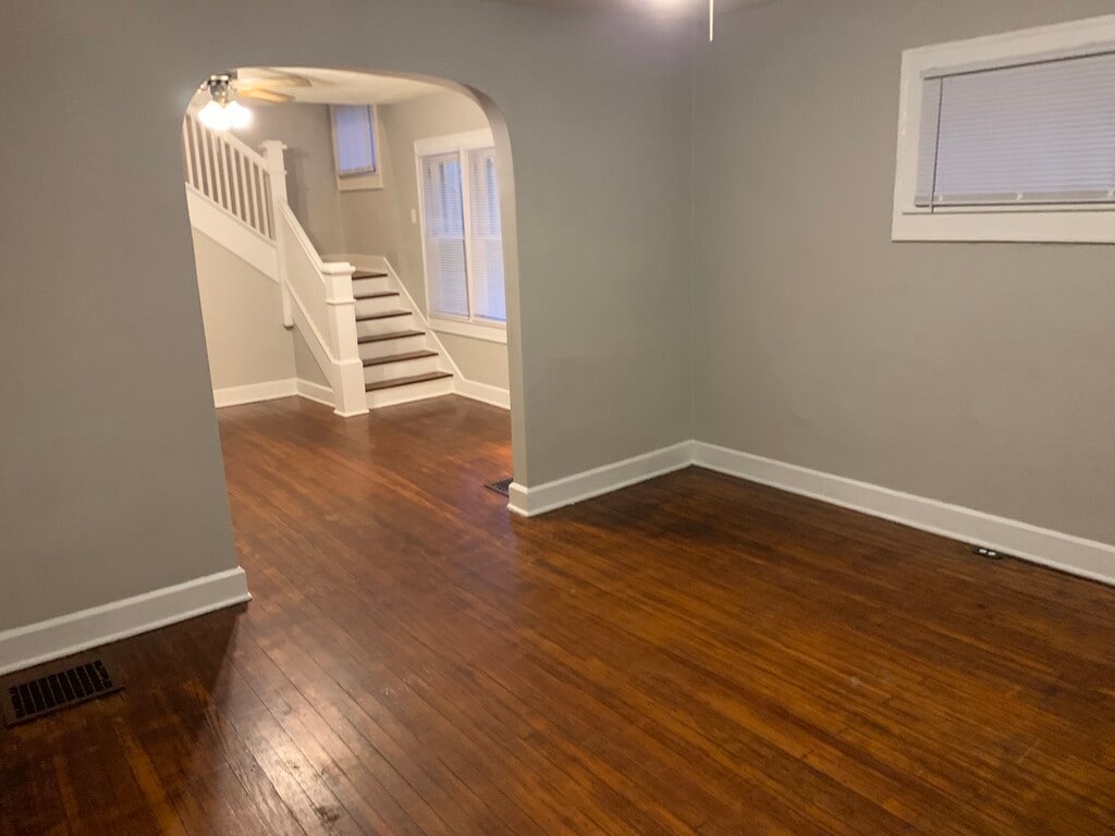 Hermosa casa dúplex de 3BR 1 baño en una calle bien conservada bordeada de árboles. Dos pisos más sótano. Conexiones para lavadora/secadora en el sótano Muchas, muchas actualizaciones como cocina actualizada, baño y pintura fresca en todo el lugar. Suelos de madera excepto cocina y baño. La cocina y el baño tienen nuevos pisos de vinilo. Porche delantero cubierto. Patio de ladrillo en el patio trasero. (Preferir que no haya mascotas. Permitirá que un gato se comporte bien. El propietario paga la factura del agua/alcantarillado. El inquilino paga gasolina y electricidad. Se requiere prueba de ingresos. Comprobación de crédito antes de firmar el arrendamiento. No fumar. Estacionamiento en la calle frente a la casa y también 1 lugar en la plataforma de estacionamiento junto al callejón trasero).