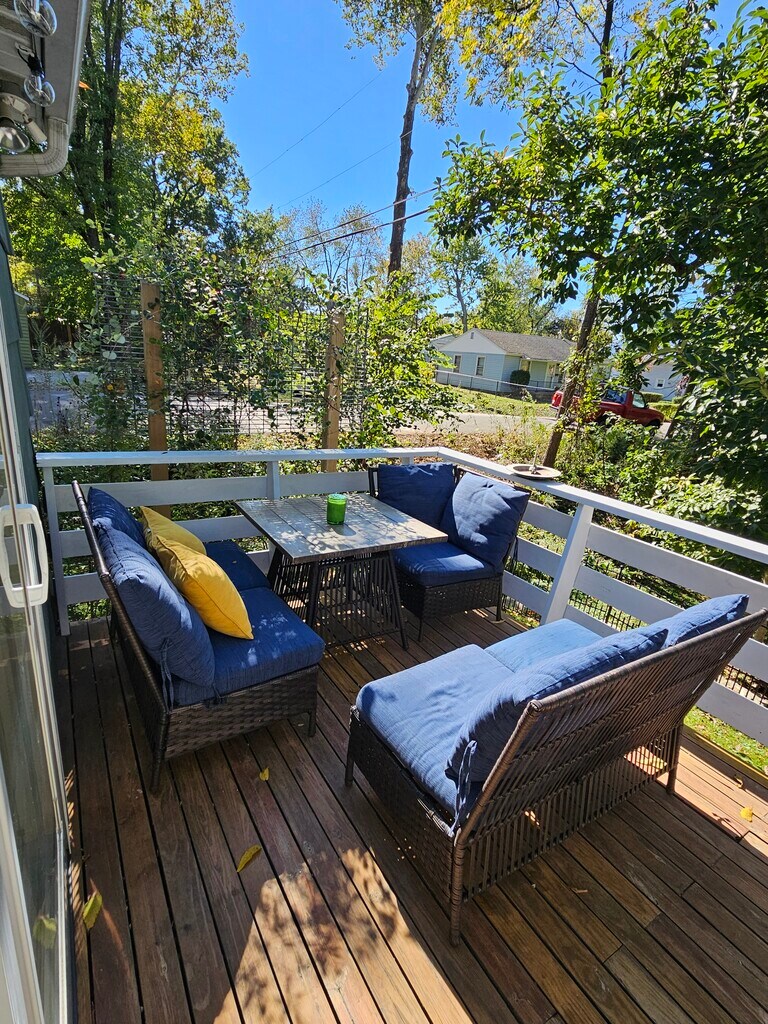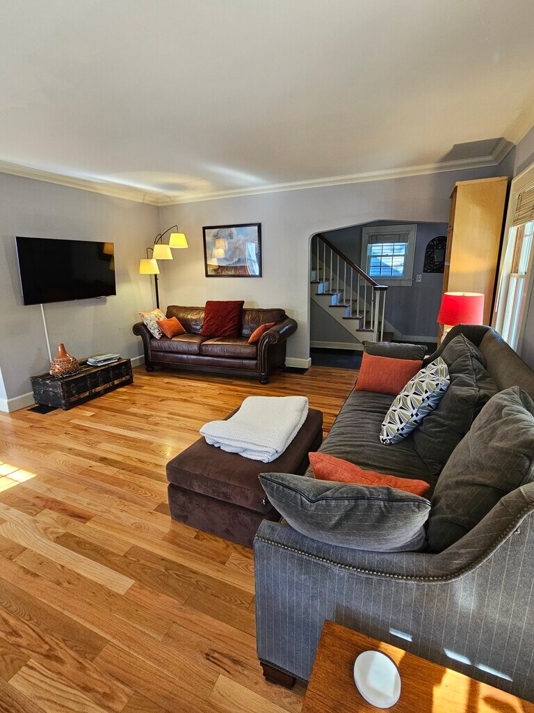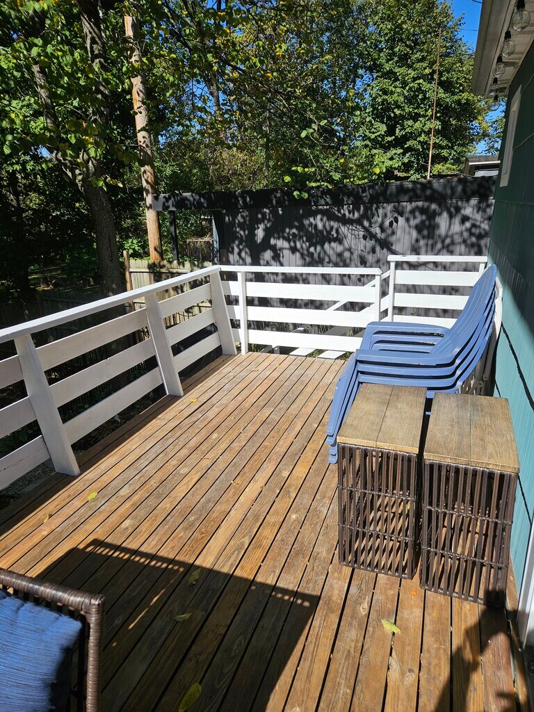 This charming 1920’s home, located in historic Vinegar Hill neighborhood is minutes from campus and the hub of IU and downtown activities, shops and restaurants. 6 minutes to Memorial Stadium. Fully furnished Hot Tub Fireplace Fire pit 4 bedrooms 3 King and 1 Queen bed 2 1/2 baths with heated tile floor in master bath. Well-appointed kitchen 2 desks (1 printer) Hi speed internet Off street parking Bryan Park (two short blocks) Grocery store 3-minute drive Downtown 3-minute drive Coffee 5-minute walk 7 Blocks to Downtown and Indiana University campus You will have private access to the entire home. Located on the border of historic Vinegar Hill and Bryan Park neighborhoods, it's a short 7 block walk (15 minutes) to the Indiana University campus and downtown activities, shops and restaurants. The very popular Bryan Park is 2 short blocks away and offers a paved walking path, multiple playgrounds, fitness stations, Bryan Park pool, music, movies, basketball courts, tennis courts, baseball diamonds, volleyball, beautiful picnics spots and even a creek! Free off-street parking for three with free street parking available. The home is on an official bike route with easy access to the B-line bike trail to walk or bike to downtown or Switchyard Park. Our park-like back yard is adjacent to a wooded lot and is frequently visited by many wildlife including deer, hawks and even owls!