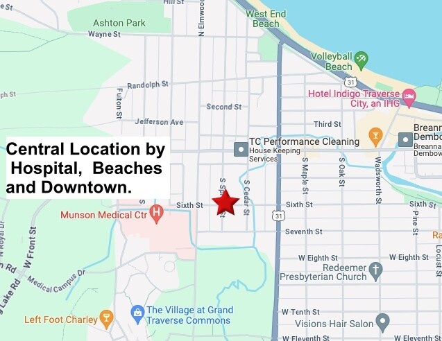 Spectacular location in downtown Traverse City. 1.5 blocks from Munson Hospital, 3 blocks to historic state hospital grounds, walking distance to the beach, downtown, and festivals. Charming, historic house remodeled in 2024. Fully furnished. Off street parking. Private, fenced back yard in a safe and quiet neighborhood. Perfect for medical professionals looking for convenience or anyone working remotely as there is plenty of space for a desk. No smoking or pets. Utilities included.