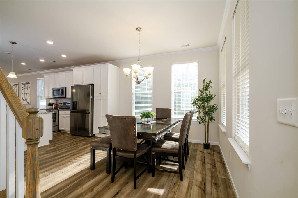 Beautiful 3BR/2.5BA townhome with over 1,800 sq ft! Open floor plan with LVP flooring, spacious living area, and a modern kitchen featuring granite countertops, white cabinets, stainless steel appliances, and a large island. Main-level owner’s suite with walk-in closet and dual vanity bath plus an additional bedroom for added flexibility. Upstairs offers two more bedrooms and a versatile loft—perfect for a home office or second living space. Enjoy a private fenced patio and attached garage. Residents have access to resort-style amenities including a pool, clubhouse, fitness center, tennis courts, dog parks, scenic walking trails, and access to Lake Wylie. Conveniently located near shopping, dining, and major commuter routes. Available 3/31—apply today before it’s gone