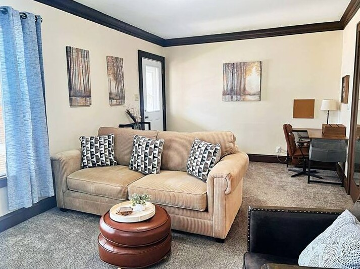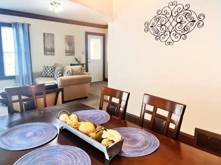 Welcome to Casa de Bell (Lower Unit)—a stylish and spacious 2-bedroom home ideal for midterm stays. Nestled in a peaceful neighborhood in Shawnee, this fully furnished unit is perfect for traveling professionals, medical workers, or anyone in need of a comfortable home-away-from-home. ??? Cozy Living & Workspace Step inside to a warm, inviting living area complete with a plush couch, armchairs, a flat-screen TV, and a functional desk setup for remote work. A small entry nook offers a convenient spot to hang coats or drop your keys. ??? Dining & Fully Equipped Kitchen Enjoy home-cooked meals in the dedicated dining area. The adjacent kitchen features a full suite of appliances including a stove/oven, microwave, refrigerator, and ample cabinetry for storage—everything you need for a seamless stay. ??? Comfortable Bedrooms Bedroom 1: Queen-size bed, dresser, nightstand, and built-in closet Bedroom 2: King-size bed (being finalized), plus an oversized walk-in closet for extra storage ?? Bathroom A clean, well-lit bathroom is centrally located between both bedrooms and includes all basic essentials. ?? Parking & Private Access Guests enjoy private entry through the rear door, secured with a Schlage smart lock for keyless access. The unit includes use of the garage (exclusive to the lower level) plus one driveway parking space. ?? Laundry & Utilities Laundry is located in the basement and includes a Maytag dryer, Whirlpool washer, and access to the furnace, water heater, and air filter area—great for longer-term guests who may need to manage basic maintenance. ?? Prime Location in Shawnee Set in a quiet residential area but just minutes from local shops, restaurants, and highway access, Casa de Bell offers both tranquility and convenience for mid-length stays.