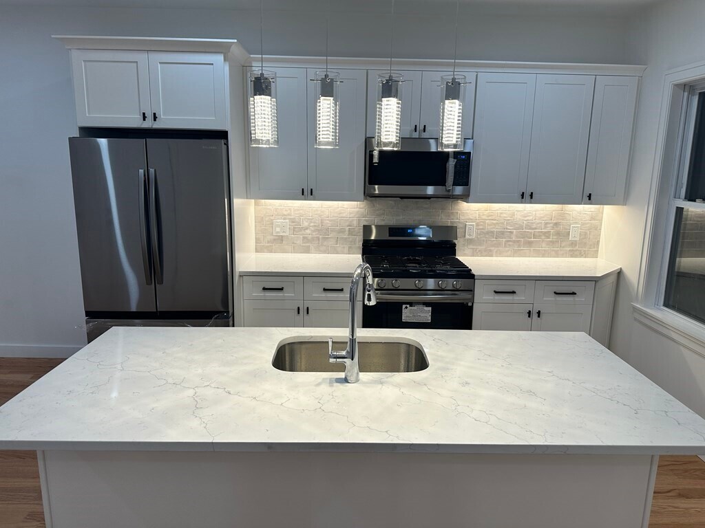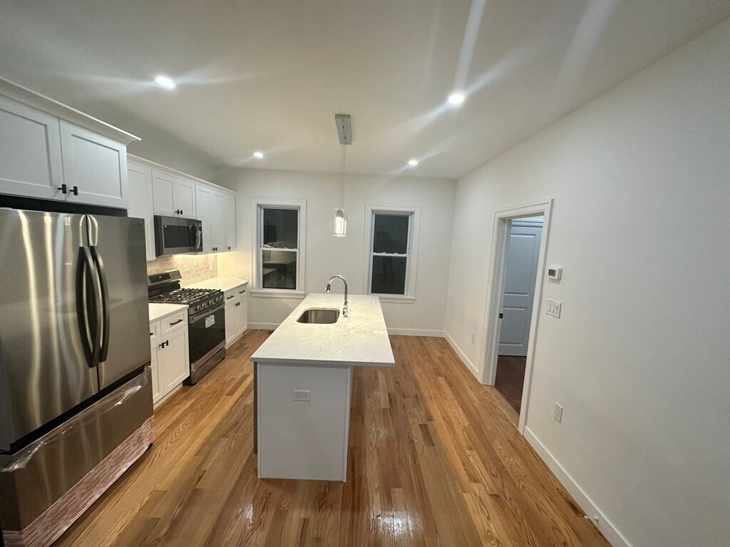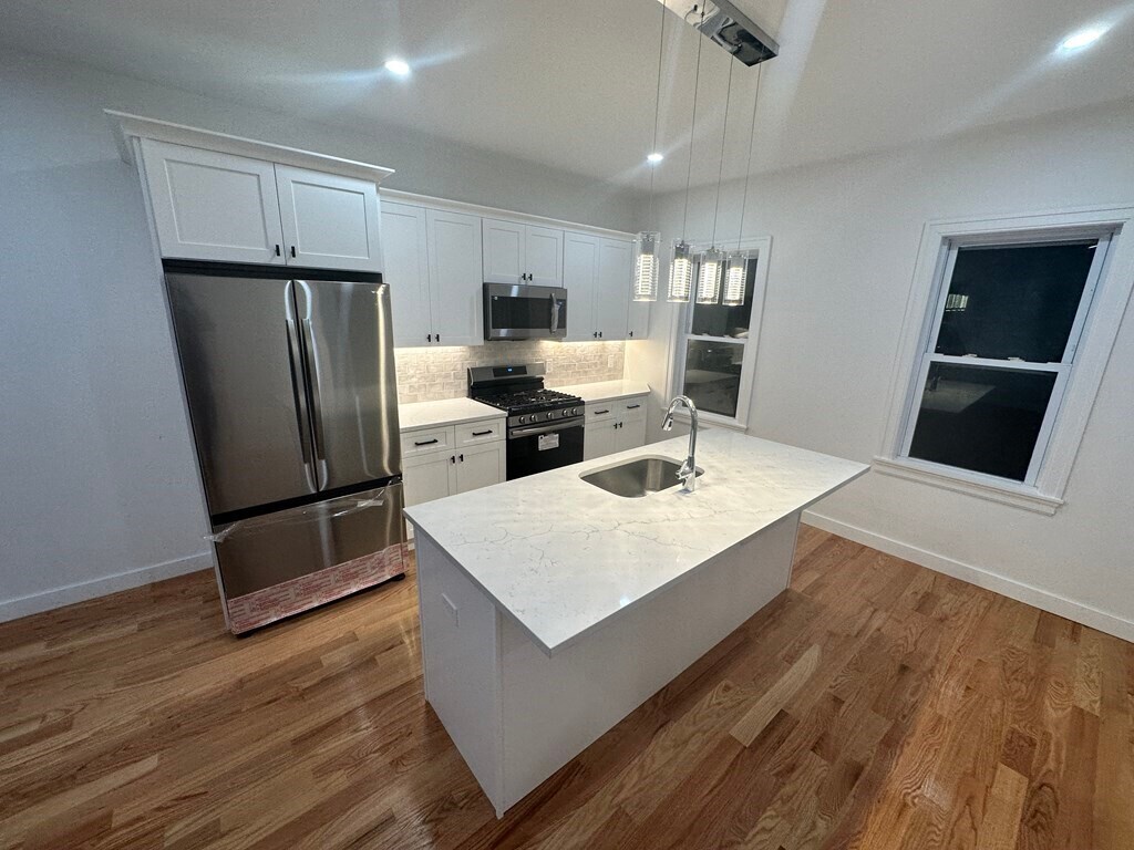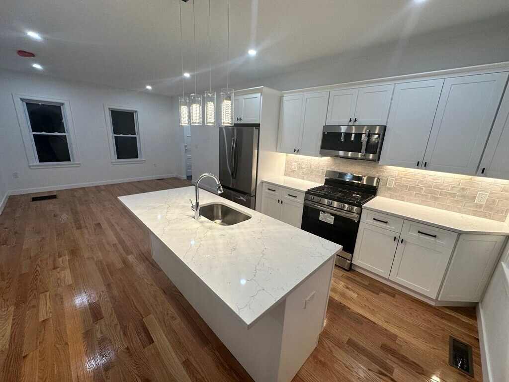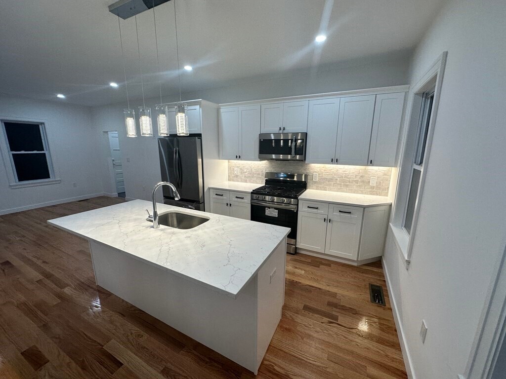 $2,800/mo- Beautiful 2 bedrooms and 1 bath apartment. Newly renovated unit features hardwood floors throughout, large eat-in kitchen, gas cooking, brand new appliances and quartz countertops. All this in an open concept design with recess lighting and modern details. Central Ac/Heating. Laundry Hookups available (Tenant to bring their washer & dryer) 1 assigned parking. The first floor unit features large sun drenched rooms and a gorgeous side yard. Commuting becomes a breeze in this great location near Quincy Adams T, walking distance to red line and easy highway access. Close star-market, Bj's more shopping centers and malls. Don't miss out on this fantastic opportunity to make this condo your new home! A year lease. Good credit score, strong income and references required.