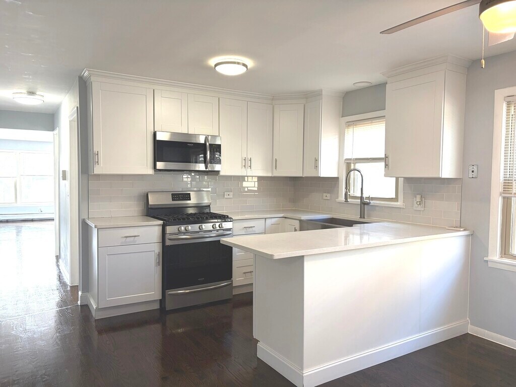 River Grove apartment with parking for rent ! Top second floor large 1,500SF fully remodeled 3 bedrooms 2 bath with new kitchen, white cabinetry, SS Appliances, quartz countertops, glass tile backsplash, new stainless-steel appliances, new bathrooms, spacious living room with large windows and gleaming hardwood floors . Rent is $2400 per month. tenant pay for heat, gas and electric. Must have good credit and rental history. Applications $49 per adult, no pets please. Located 8222 Grand Rive Grove Illinois Please text me with your information