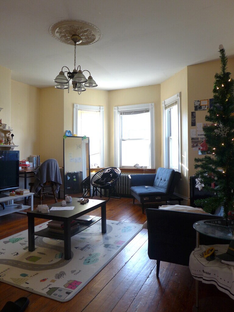 Well-lit three bedroom apartment One full bathroom Beautiful kitchen with city views Gas stove Dishwasher Spacious living room with decorative fireplace Hardwood floors Laundry in the building Friendly owner Short distance to local universities Easy access to public transportation No security deposit required