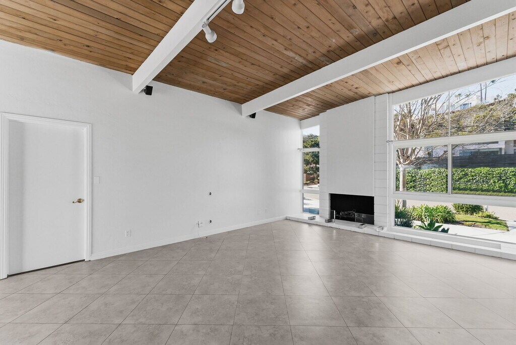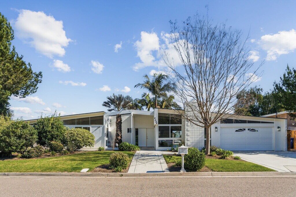 Welcome to this exquisite mid-century modern, single-level residence, nestled near the end of a cul-de-sac in the prestigious La Jolla Scenic Heights community available now. As you step inside, you'll be welcomed by an open, bright, airy floor plan! The home features stunning high beamed ceilings where large windows offer natural light throughout the entire house and a large living room that leads to the backyard. The residence includes four generously sized bedrooms and three well-appointed bathrooms. The primary suite is a tranquil retreat, with an ensuite bathroom and direct access to the outdoors. Outside you will find a resort style pool with a meticulously landscaped lot, offering ample space for relaxation and recreation. The spacious patio areas provide the perfect setting for outdoor gatherings and dinning, with scenic mountain views. Additional amenities include an indoor laundry room, a large two-car garage with brand new floor coating, and a workstation inside garage.