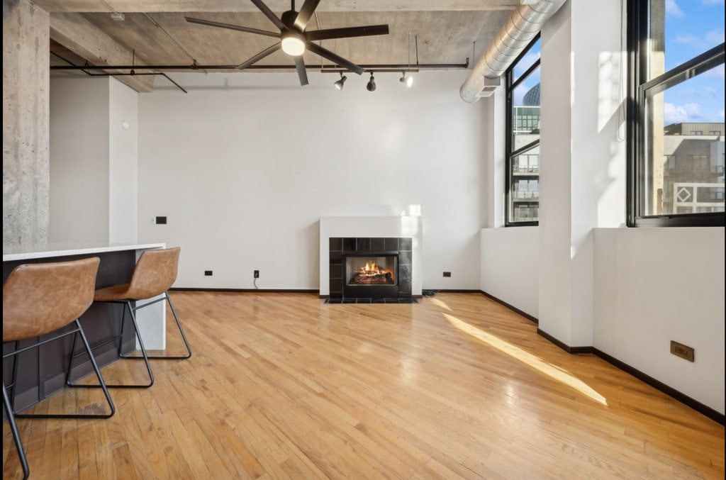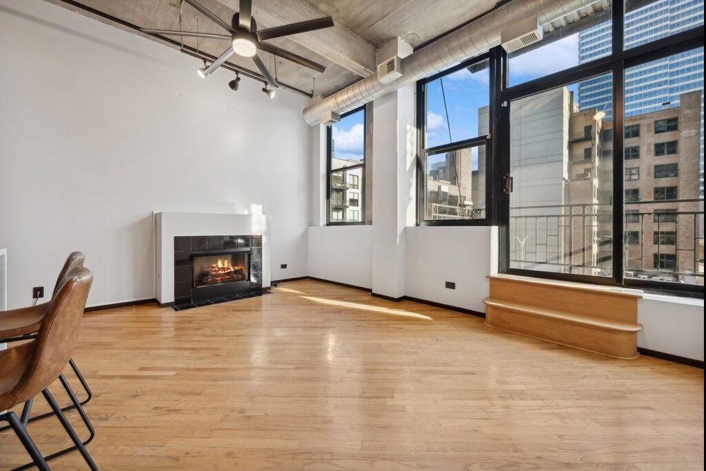 This 1-bedroom, 1-bathroom apartment at 843 W Adams St offers 900 square feet of living space. The unit features a loft layout, providing an open and spacious feel. The living room includes a fireplace, enhancing the ambiance of the space. The kitchen is equipped with a dishwasher for convenience, and a washer/dryer is included for in-unit laundry. The bathroom is designed for functionality and comfort. Additional amenities include air conditioning and storage space. The building is accessible via an elevator, adding to the convenience of the property. The rental price is available upon request.