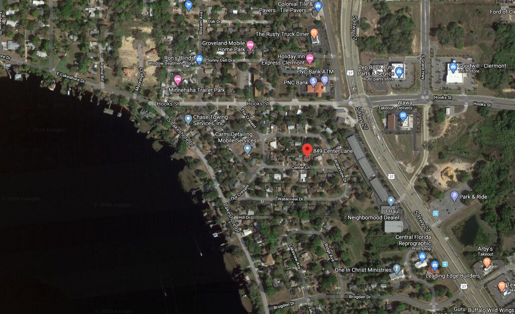 Está localizado en el barrio Lake County, 849 Center Ln en el código postal 34711 de Clermont, FL.
