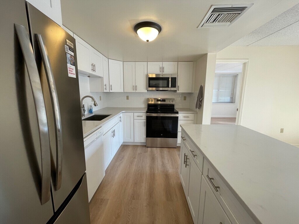 This home gives you a clean, modern place to land with brand-new quartz counters, new appliances, and fresh flooring. The open layout sets the tone the moment you walk in, and the balcony offers a calm spot for your morning routine or a relaxed end to your day. The bedrooms sit on opposite sides of the home, so you get privacy, breathing room, and a layout that simply works. Your own laundry and central air add to the day-to-day comfort. This building offers the kind of amenities that make life easy: a pool for cooling off, a gym to keep your routine on track, a roof deck for unwinding, a landscaped courtyard, and on-site management that keeps things running smoothly. You also get dedicated garage parking, so you always know where you’re parking. This location gives you direct access to transit, local cafés, restaurants, and everything along the Green Line. You’re close to BU, BC, Boston Landing, and Coolidge Corner, so your daily trips feel simple and connected. This home offers convenience, comfort, and a setting that feels good the moment you enter.