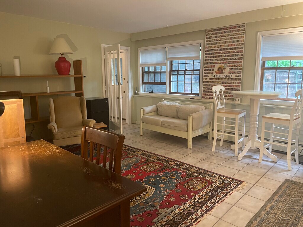 Pretty neighborhood, furnished or unfurnished, available now in south end hill section of Burlington, 1 bright livingroom and bedroom w. west facing windows. The rest of the apartment is shared with a graduate student: a fully equipped kitchen w. dishwasher, dining area, bathroom w tub & shower, laundry room, landscaped pocket garden. Approx.10 min. walking distance to UVM and Champlain College campuses, Oakledge Park on waterfront, the new City Market, Burlington Country Club-x-country skiing in winter, 5-8-min drive to downtown, UVM hospital. Pets negotiable