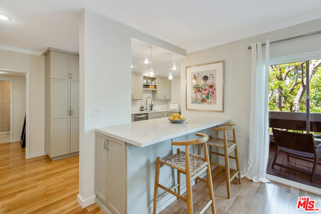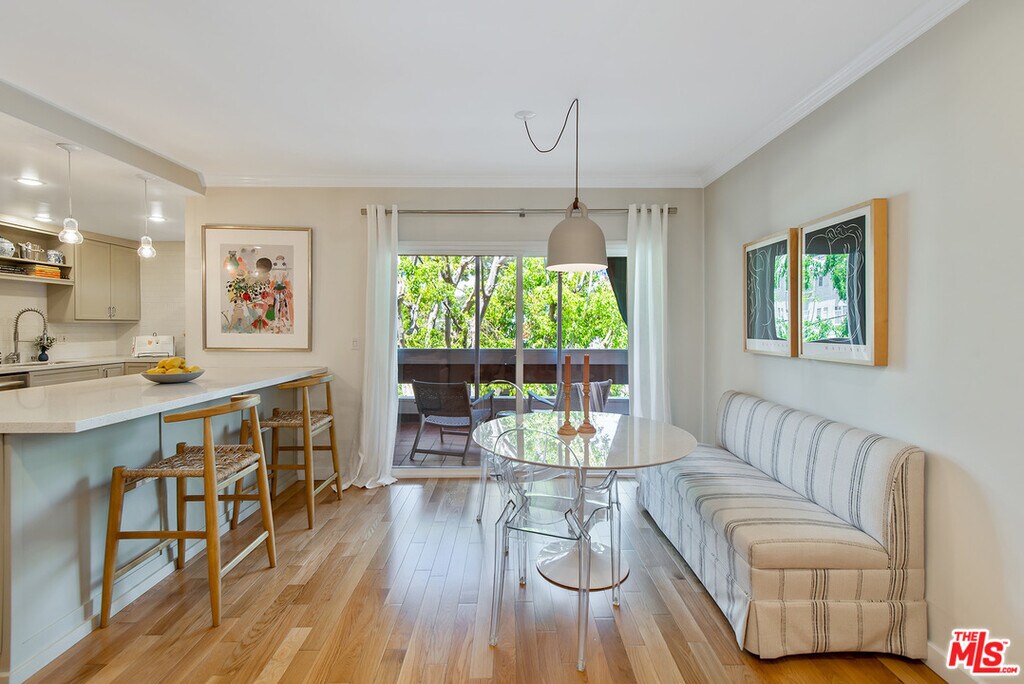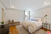 Located in the heart of vibrant West Hollywood, this exquisitely designed 2 bedroom, 2 bathroom condo offers an unrivaled blend of modern elegance and urban convenience. Corner unit with beautiful hardwood floors throughout, and recessed lighting and dimmer controls in every room. Large open space for living and dining, opening to a large private balcony perfect for relaxing and entertaining. Kitchen with quartz counters, an abundance of custom cabinetry and stainless steel appliances. Side by side washer and dryer in the unit. Located near night life, restaurants and shopping.