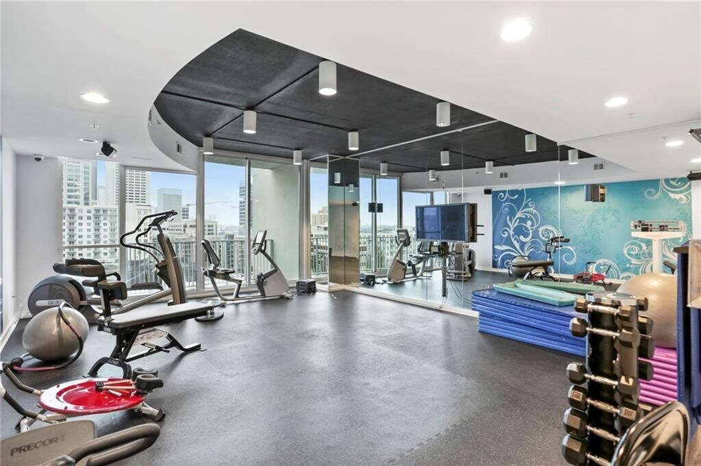 Live and play in the heart of Midtown! High rise condo with Amazing views of the city for rent! Largest 1 bdrm/1 bath floor plan. The unit has hardwood floors throughout, floor to ceiling window in the living room and bedroom, spacious bathroom and custom built closet, gourmet kitchen with granite breakfast bar, stainless steel appliances, and high speed Internet. 24 hrs concierge and 1 gated assigned parking space. Building facilities and common areas located on the 7th floor are newly renovated and include resort style pool, aerobics room, cardio/weight rooms, huge club room, pool table, movie theater room, patio with grills and outdoor gazebos. Walk to MARTA, Starbucks, Piedmont park, beltLine, and GA Tech. Available immediately.
