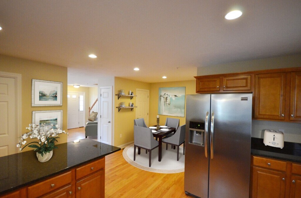 Available for March 1st Welcome home to this bright and spacious 3-bedroom, 1.5-bath townhouse tucked away on a quiet residential road. Perfectly blending comfort and convenience, this townhome offers: Modern Kitchen Granite countertops, stainless steel appliances, ample cabinet space, and a clean, open layout. Stylish Living Gleaming hardwood floors in the living and dining areas, cozy carpet in the bedrooms for extra comfort. Private Outdoor Space Relax on your own deck, overlooking a peaceful setting. Extra Storage Full private basement provides plenty of room for storage, hobbies, or a workout area. Convenience In-unit laundry, central air conditioning, and efficient utilities included (water, sewer, trash). Located near shopping, dining, and commuter routes, this townhome combines a quiet neighborhood feel with easy access to everything you need.