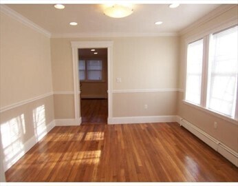 Location, location! FIRST-floor apartment with five rooms. The MBTA and restaurants are out your front door. The unit was remodeled in 2010 and wholly repainted and updated in 2025. It's a beautiful unit with gleaming hardwood floors and brand-new appliances (dish/washer, stove, and disposal). Newer Microwave and Refrig 2024! The three bedrooms have ample closet space. The living room is gracious for entertaining. The unit has one bath, washer, and dryer hookups. Terms: Lease 1 year; Tenant pays all utilities. Available now! Photos are coming by Friday 2/14.