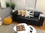 Furnished 1-bedroom apartment. Upstairs unit. Quiet neighborhood. Great natural sunlight, WiFi-included. Off street parking. Plenty of closet and storage space.
