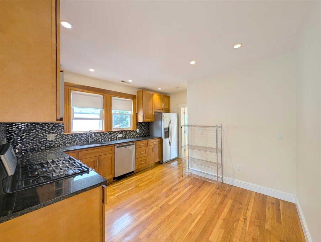 Must see to believe this gut renovation on 2nd floor of 2 family home. 4 bedrooms, 2 full bathrooms, deluxe eat in kitchen with granite counters, cherry cabinets, and stainless steel appliances, gigantic living room that is almost loft-like with panoramic windows, free laundry in basement. AND includes exclusive use if driveway that can fit up to 4 medium sized cars tandem. Great location near Somerville line. Walk to the new Ball Square Green Line train stop in only 10 minutes! Great unit (Reference #171959)
