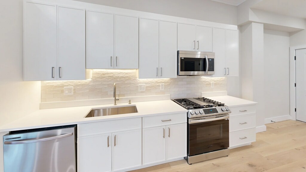 Located in close proximity to the MBTA to Oak Square or Kendall/MIT station. Each unit boasts quartz countertops, stainless steel appliances, hardwood floors, private entrances, and skylights. New Washer and Dryers in every unit, Central AC, basement storage (for an extra fee), and off-street parking for up to 4 vehicles at $200 per space per month. Tenants cover utilities, while pets are welcome (Cats: $150/month, Dogs: $200/month). Security deposit required, negotiable on a case-by-case basis. The information in this listing may have been gathered from third-party sources, including the owner and/or public records. Listings are subject to errors and omissions. Encore Realty disclaims any and all representations or warranties as to the accuracy of this information. Encore Realty is an Equal Housing Opportunity Agency. Photos may not always be of the actual apartment. At times, sample images are used to make a general representation. By clicking on our ad, you are requesting to hire Blue Stream Real Estate dba Encore Realty and its agents unless explicitly stated otherwise.