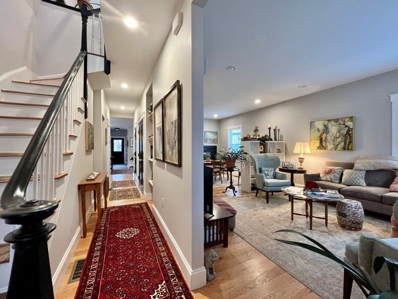 Fully renovated single home in desirable West Medford! Lead compliant. First floor open floorplan with 3 sided fire place. Granite/Stainless Steel kitchen has recessed & pendant lighting. Dining area off kitchen is accented with tasteful wall sconces. Half bath on this floor. 3 closets, custom built ins & mudroom with bench seat & coat hooks provide plenty of storage. 3 bedrooms upstairs with walk-in closets. Primary suite is spacious with double closets, and en suite bath. A 2nd full bath is shared by the other bedrooms. Convenient in-unit laundry on 2nd floor. Full basement for storage. High efficiency heating and Central A/C. Driveway parking plus one car garage. Landscaped with rear patio area and small yard. Tenant pays all utilities and snow removal. Great location near Dugger Park, 0.5 mile to Commuter Rail with reduced inner-city pricing, 0.1 mi to East Arlington, 1.5 mi Tufts.