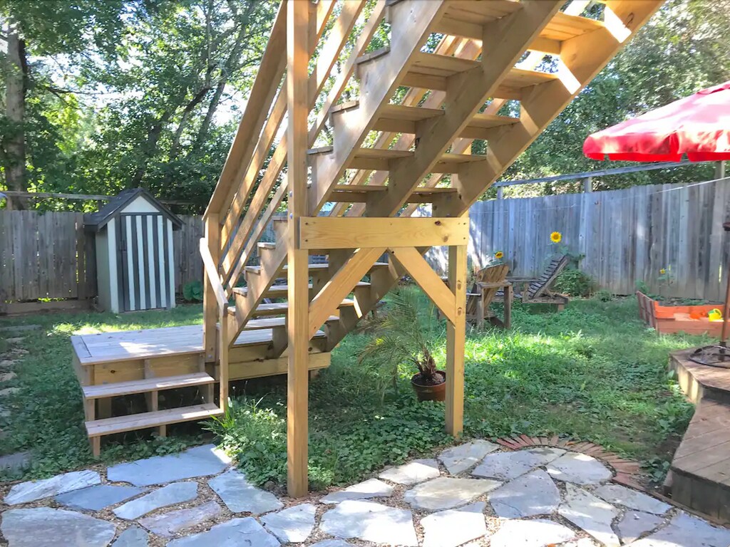 CONVENIENTLY LOCATED, IN THE OAKLEY SECTION OF ASHEVILLE: 10-minute drive to downtown Asheville A few minutes to many stores, restaurants, cinemas… 1.5 miles to the laundromat 20 min to the Airport Safe neighborhood RENTAL: One parking space in driveway Private and keyless entrance door Bedroom (queen bed, small desk and chair, closet. TV monitor now available - personal streaming logins required) Living-room space (unfolding sofa, coffee table and storage) Bathroom closing with a curtain (sink, vanity, toilet, shower) Private patio (swing, bistro table and 2 chairs) Kitchenette (counter, coffee maker, compact refrigerator with freezer, toaster oven, microwave, a 2-burners induction hot plate, small RV dishwasher, basic silverware and cookware) ACCESS TO: Back and front yard 2 fire-pits Lounge chairs Hammock Grill INCLUDED: Electricity (includes heat and AC) Water, sewer Trash High-speed fiber internet (cable is not provided) Lawn care WHAT TO KNOW: Not handicapped accessible Room is for 1 person No Pets Smoke free Not a party environment. Professional seeking affordable rent! Must pass background and credit check $29 through this site A renter's insurance will be required.