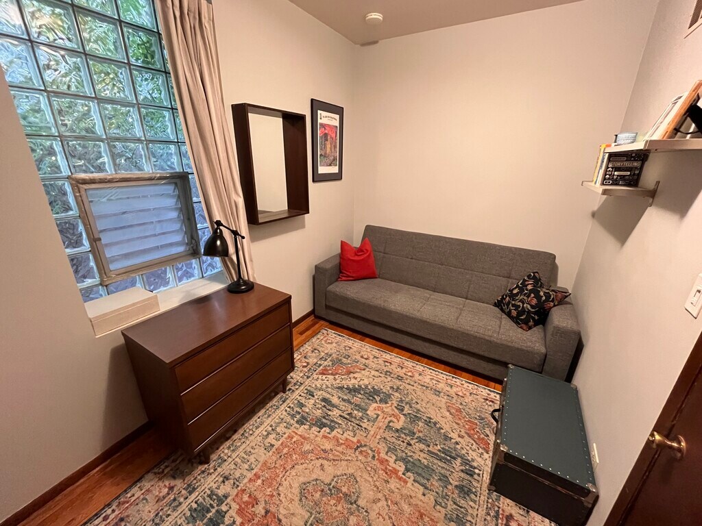 $700 non-refundable move-in fee -no security deposit - no application fee Huge bright, beautiful First Floor apartment with every bell and whistle. 2 Queen-sized bedrooms, 1 small office room, and a full bath with jacuzzi tub. Price INCLUDES A GARAGE SPACE with automatic garage door opener. Turn-of-the-century woodwork and oak hardwood floors throughout. High ceilings, great windows. Vintage French doors lead to a large private front balcony viewing the historic St. Nicholas Cathedral. A nice rear balcony as well, overlooking the back yard. Huge living room, dining room and kitchen. Stainless steel appliances, built-in microwave, dishwasher, range and oven. Glass block features, plus two large bay windows. This is a very nice apartment. Free shared washer and dryer in a large laundry room. CALL OR TEXT PETER Excellent convenient layout, first floor of a two flat on famous tree-lined Oakley Blvd. Located in the heart of the Ukrainian Village Registered Historic District. Amazing location. Easy walk into Wicker Park, Bucktown Six-Corners, East Village, and several parks. Walk Score is 94! Super convenient to public transport, all buses and trains. Approximately 1 mile to the IMD - Illinois Medical District. Near tons of clubs, restaurants and shops on Division St, Damen Ave, North Ave, Milwaukee Ave, Six-Corners etc. 3 blocks from a Mariano's Grocery, 1 block from a European Deli, 2-3 blocks from coffeehouses. More than 30 top restaurants deliver to this apartment! 3 blocks to public tennis courts and a large city park. $700 non-refundable move-in fee, no security deposit CALL OR TEXT PETER to view it. No tobacco smoking. This is a very quiet building, The other tenants are all friendly working professionals who need their sleep. If you like to party, make noise, or play stereo, you won't like this place. 6 months lease and option to sign new lease in Spring. Renter pays for electric and gas. Owner pays for water and trash. No tobacco smoking in apartments or on the property. Prefer No Pets Renters supply their own renters insurance.