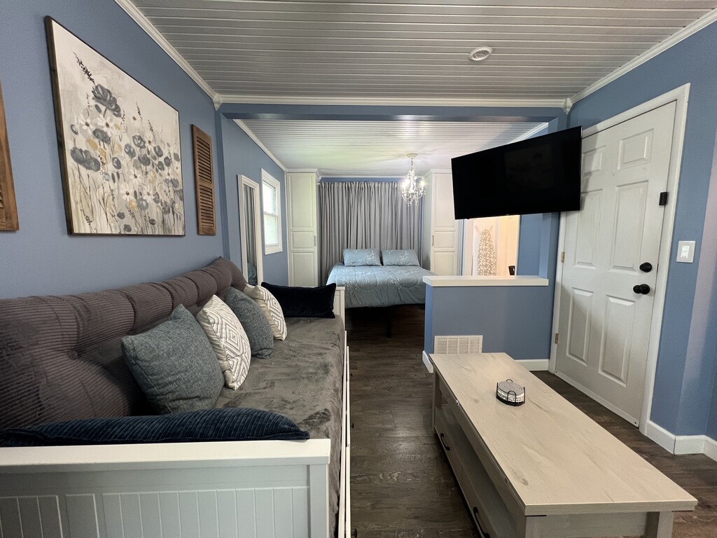 Welcome to your peaceful retreat in New Lenox! This beautifully furnished studio apartment offers the perfect blend of charm, functionality, and comfort for mid-term stays (30+ days). Whether you're a traveling nurse, corporate professional, or remote worker, you'll feel right at home here. Comfort & Layout This thoughtfully designed space features a cozy queen bed in a semi-private sleeping nook, a stylish daybed (great for lounging or additional sleeping), and a relaxing open-concept living area with a mounted TV and coffee table for unwinding after a long day. Kitchenette Amenities Enjoy a spacious kitchenette with a full-sized refrigerator, microwave, and sink. The kitchenette has everything you need to enjoy home cooked meals away from home allowing you to save money and eat what you like! Theres also a cute dining table for meals. Bathroom & Laundry A clean and private bathroom with plenty of storage and a shower is located just off the main living space. Shared laundry available via a private entrance if desired. Location & Perks Nestled in a quiet residential neighborhood, this unit is just a short drive to local hospitals, dining, shopping, parks, and nature trails. In fact, the house is next to a 22 mile bike path that travels 22 miles from Joliet to Chicago Heights, IL. A private entrance to the studio apartment ensures security and privacy. Street parking available. Silver Cross Hospital And Medical Centers is only 3.59 miles away and Presence Saint Joseph Medical Center is 9.98 miles away! 2 Metra train stations with access to Chicago are 2 miles and 2.4 miles away. Included: All utilities + WiFi Smart TV Air conditioning & ceiling fan Fresh linens and towels Quiet, respectful atmosphere Meals can be provided for an additional fee.
