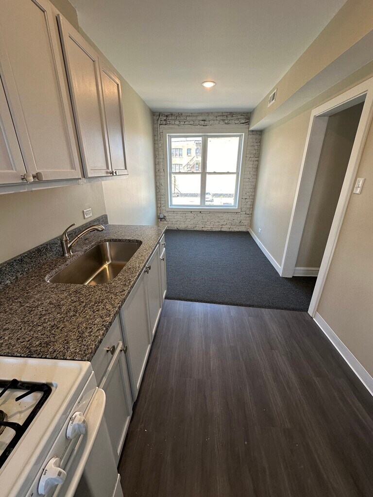 Newly remodeled apartment featuring central air conditioning, granite countertops, new windows, electric and plumbing Storage unit in the basement On site laundry Walk to Metra, grocery store and Starbucks