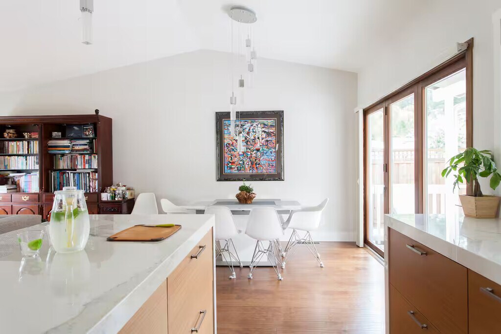 Sun-drenched room with private bath in Millbrae (94030) Newly renovated open layout with vaulted ceiling combines living room, dining area and kitchen. Glass bifold doors lead to serene backyard with large patio deck. Breakfast nook features leather banquette seating. Bedroom offers spacious wall-to-wall closet and fresh full bath. Location · Safe and quiet neighborhood near Millbrae Green Hills Country Club · 5 minutes away from BART, Caltrain, HW101 and HW280 · Near Millbrae downtown, shopping, and restaurants · Spacious driveway and easy street parking The space/amenities · Lightning fast WiFi internet · SmartTV with Amazon Video, Netflix, and more · New kitchen appliances · Light kitchen use only (basic food preparation and heating) · Filtered Ice water and Instant Hot water · New LG Washer and Dryer · Professional House Cleaning · Three (3) bedroom house with three (3) bath Details · Rent: $1,750/month for Private Room & Bath, $200 more for Patio Suite & Bath · Utilities: Shared among housemates · We Pays: Cable, Internet, Gardening, Trash/Recycling, House Cleaning · Lease: 12 months · No pets, No smoking, No party · Available: Now!