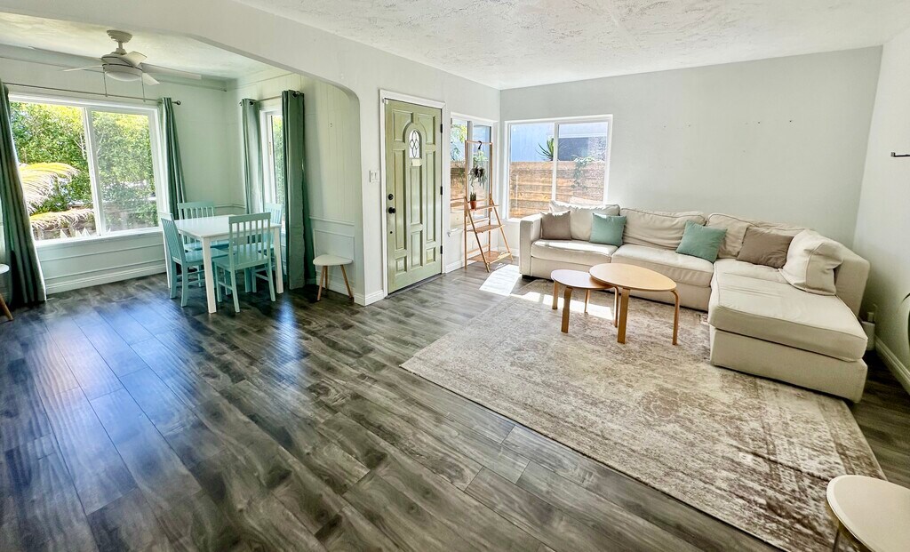 Experience the ultimate coastal lifestyle in this sun-drenched 2-bedroom sanctuary, perfectly positioned in the heart of prime Venice. Tucked behind a lush 10-foot privacy hedge, this home offers a rare sense of seclusion that begins at the cozy front porch and extends through an airy interior featuring luxury vinyl plank flooring and a beautifully upgraded kitchen. The living space expands significantly with a versatile, partially finished garage bonus room complete with its own bathroom making it the ideal creative studio, home office, or "man cave." While the amazing backyard serves as your private outdoor oasis for entertaining, you are never far from the action; you're just minutes from the sand and surf, with Whole Foods and the neighborhood's best dining and entertainment right at your doorstep. This property seamlessly blends modern upgrades with the quintessential laid-back luxury that defines the Venice beach lifestyle 12 month minimum lease :: Security Deposit amount contingent on credit score