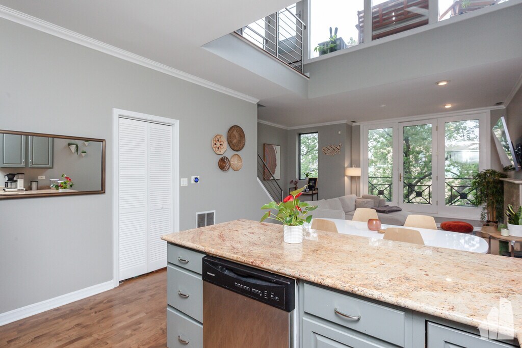 Looking for more space? Make your next home in this giant, duplex-up townhome wih skyline views, three private outdoor patios and parking included. The unit lives like a single-family home with an open kitchen/living room, and two-story windows that flood the apartent with light due to souheast exposure. Home chefs with savor the kitchen's granite counters and stainless-steel appliances. The adjacent living room offers a fireplace, and there's an extra, upstairs living area among the treetops and soaring ceilings. All three bedrooms are roomy, and there's a bahtroom for each -- including two master suites with whirlpool tubs. A carport in the back for one car is included. The charming tree-lined sreet has a neighborhood feel while being just steps from restaurants and nighlife on Division Street.