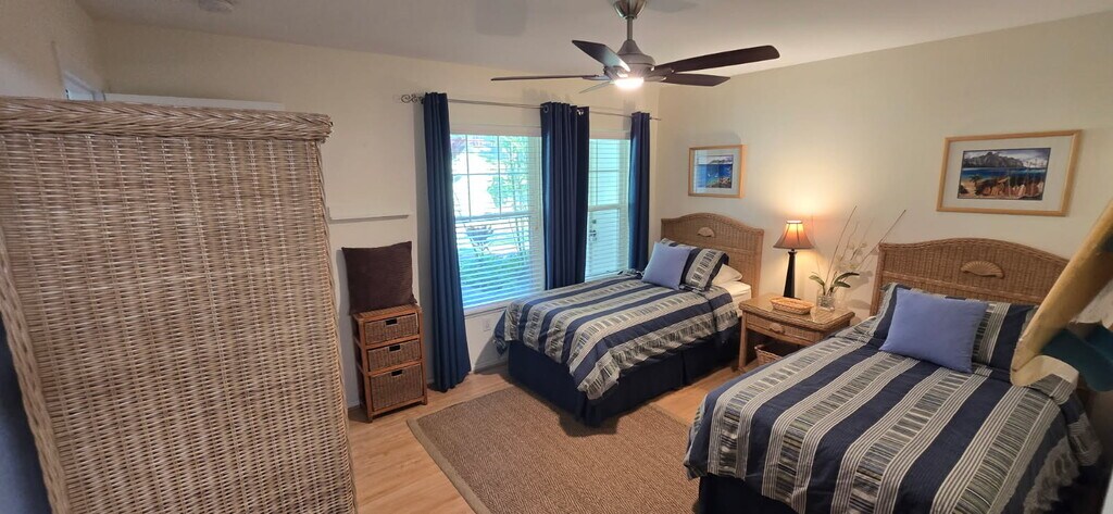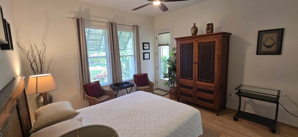 Unidad de planta baja sin vecinos por encima de usted. Paneles solares para grandes ahorros en electricidad. (Nota: sin coste solar de electricidad puede alcanzar una media de 800 $/mes. ¡A continuación, ahorrará cientos! Resort de confort hawaiano Ko Olina Resort Community con Coconut Plantation Una exclusiva fachada del campo de golf en Koolina Golf Course Esta casa adosada de dos dormitorios y dos baños y medio (espacio de estar de 130 metros cuadrados/1.350 pies cuadrados) está equipada con muebles cómodos y funcionales con decoración evocadora hawaiana. Está en un nivel sin escaleras y tiene un plano abierto. La cocina grande está diseñada pensando en el espacio abierto. Notará que junto al comedor hay un lanai que invita a la luz natural y a la fresca brisa hawaiana y a la relajante vegetación. También hay un lanai en la sala de estar que cuenta con una sala de estar que promueve el entretenimiento con una parrilla para barbacoas lista para iluminar. ¡Este es absolutamente el "factor sorpresa"! Imagine las vistas del campo de golf mientras come, toma café o simplemente toma una bebida al atardecer. También es un área maravillosa para hacer ejercicio, yoga o meditación e incluso un servicio de masajes al aire libre. Hay dos barbacoas comunitarias. Hay dos piscinas y tres spas con bañera de hidromasaje. El dormitorio principal en suite cuenta con un verdadero baño principal con tocador con lavamanos doble y vestidor. El dormitorio principal tiene un colchón Queen de alta calidad para una buena noche de descanso "moi moi" (sueño). El segundo dormitorio en suite es como un maestro junior que tiene baño privado. Hay dos camas individuales que se pueden convertir en una cama tamaño King. ¡Ahorre con "SOLAR"! ....Su factura eléctrica será más baja. Muchas unidades en Coconut Plantation pueden pagar hasta $600 a $800 por mes en factura de electricidad. Sin embargo, tener energía solar le ahorrará prácticamente cientos. Nota importante sobre precios e impuestos aplicables; los precios de temporada estarán en vigor con un aumento sustancial durante las temporadas de vacaciones e invierno (aprox. 6500 USD/mes + impuestos y tasas). Cuando se solicitan estadías más largas, que incluyen invierno y otros períodos de temporada alta, la tarifa se promediará y reflejará las tarifas más altas. Las estancias de alquiler de 1 a 5 meses son a corto plazo y requieren el pago de una tasa TAT (Impuesto de alojamiento transitorio) del 13,25 %, además del GET (Impuesto general de aduana), tasa del 4,712 %. (Impuestos totales del 17,962 %). Las estancias de alquiler de 6 meses o más son a largo plazo y solo requieren el pago de GET y una limpieza trimestral programada acordada. Nota: Las tarifas GET & TAT están sujetas a cambios en cualquier momento según las normas fiscales del Estado de Hawái (y sus otros condados). Tarifa de limpieza de mes a mes (estancia mínima de un mes según las normas de HOA de la comunidad) El cargo por limpieza de $375 NO es opcional y se cobrará por adelantado, junto con el alquiler, los depósitos y los impuestos aplicables y estimados.