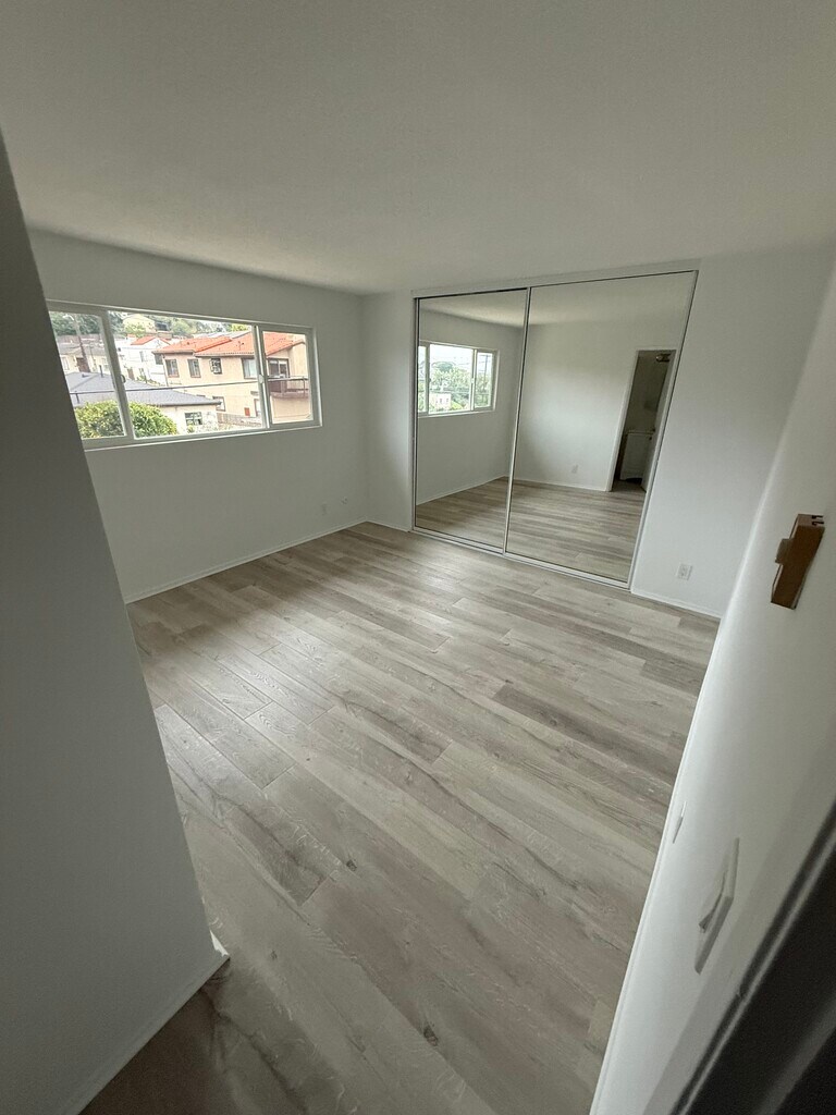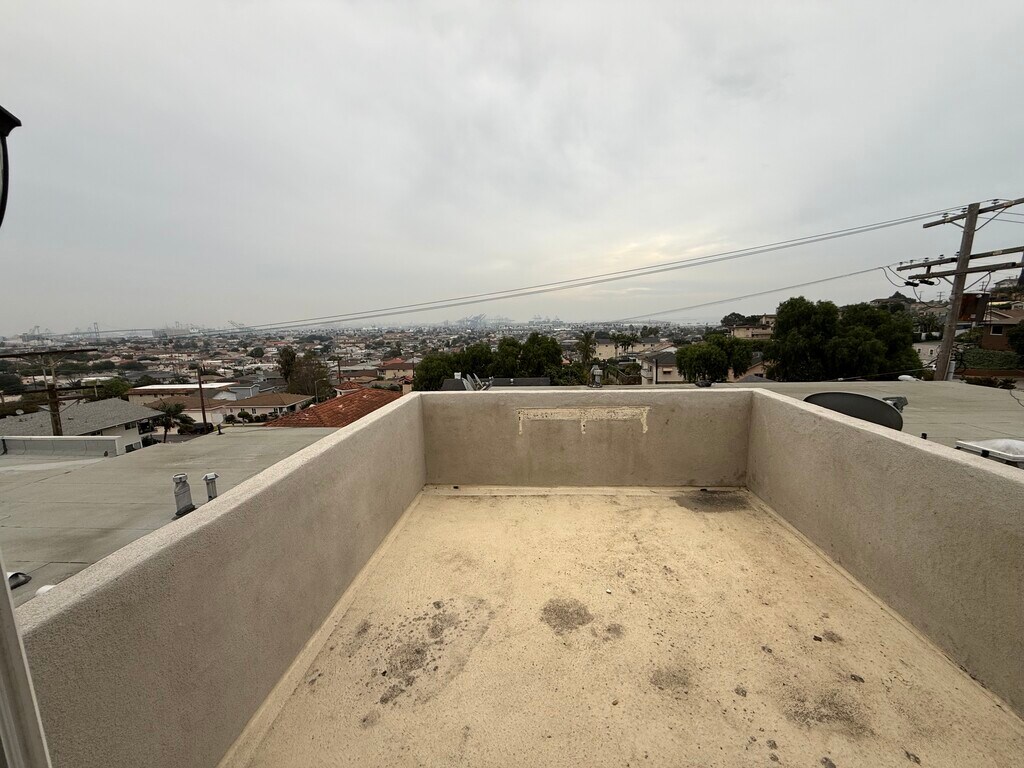 Extra-large two-bedroom, two-bath apartment located in a desirable area of San Pedro. This unique unit features a loft and a private 12’ x 12’ rooftop patio with stunning harbor views. Repainting of the balcony floor is currently in progress. Everything inside is brand new, including kitchen cabinets and all appliances, and both bathrooms have been completely remodeled. The spacious front room includes a fireplace, and both bedrooms are generously sized with large mirrored closet doors. Ample storage is available throughout the apartment. Additional amenities include a two-car garage with extra storage space and an on-site laundry room. The building is under rent control and offers a long-term, stable tenant community, with many residents calling it home for over 10 years.