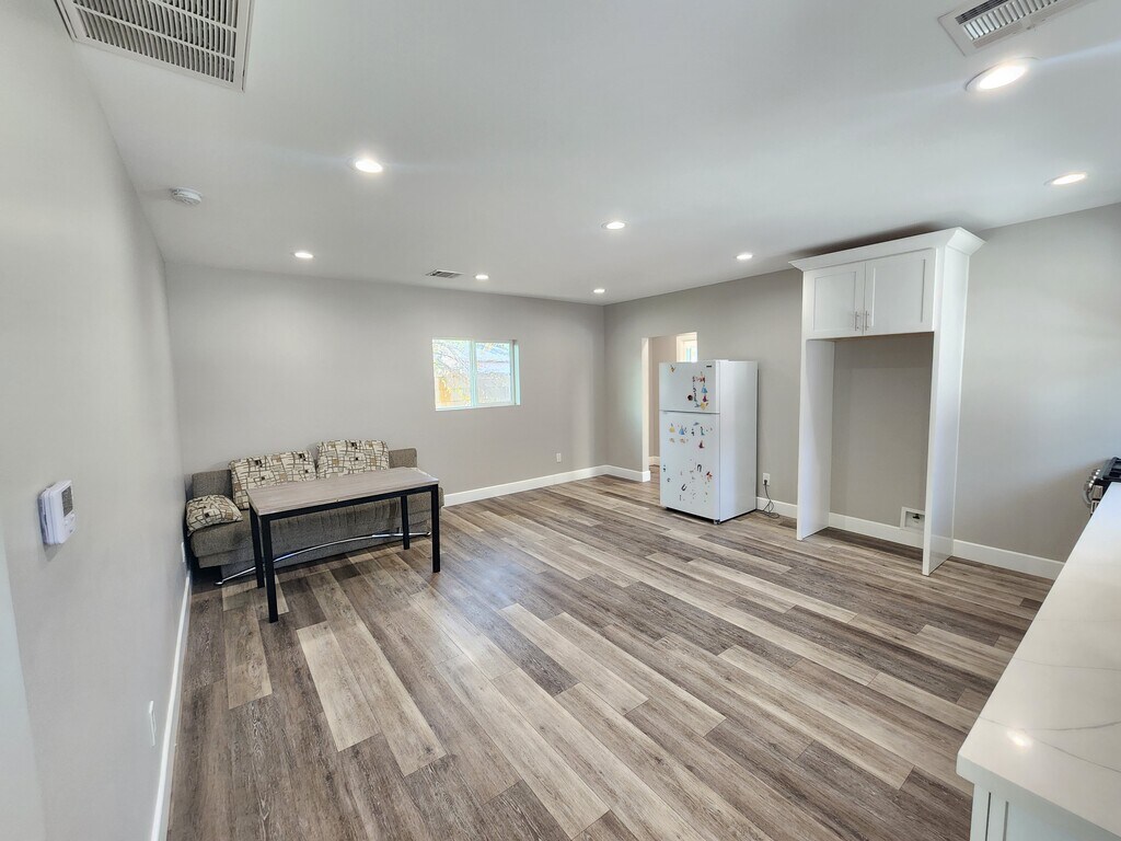 Newly Renovated ADU, Central AC/Heat, Washer Dryer included, Gated parking 2 cars, Patio, Stove and Fridge, Laminate flooring, no pets, one year lease
